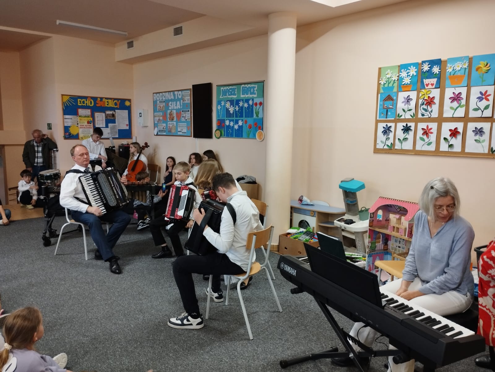 29.05.2025 oraz 03.06.2025 odbyły się audycje muzyczne w których udział wzięli uczniowie naszej szkoły oraz nauczyciele którzy razem z uczniami grali. Gratulujemy wszystkim uczniom i nauczycielom którzy wzięli udział w tych koncertach i doceniamy ich zaangażowanie i piękne wykonania utworów. Koncerty te prowadziła pani Katarzyna Domagała. Na fortepianie akompaniowała uczniom pani Elżbieta Kulińska. A razem z uczniami grał na akordeonie pan Dariusz Figarski.