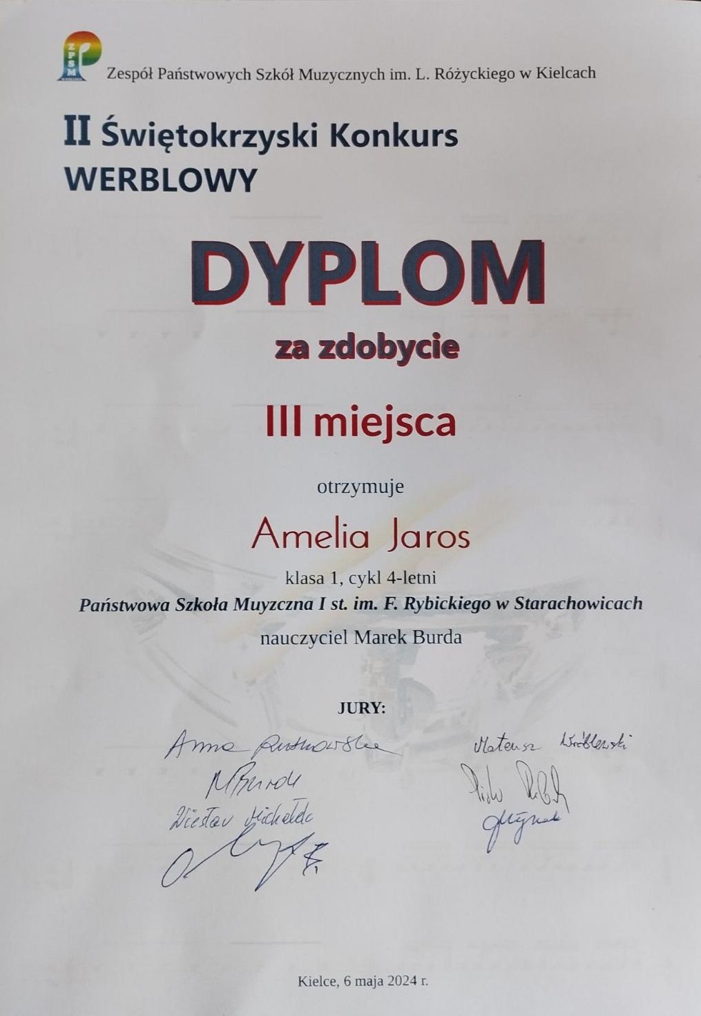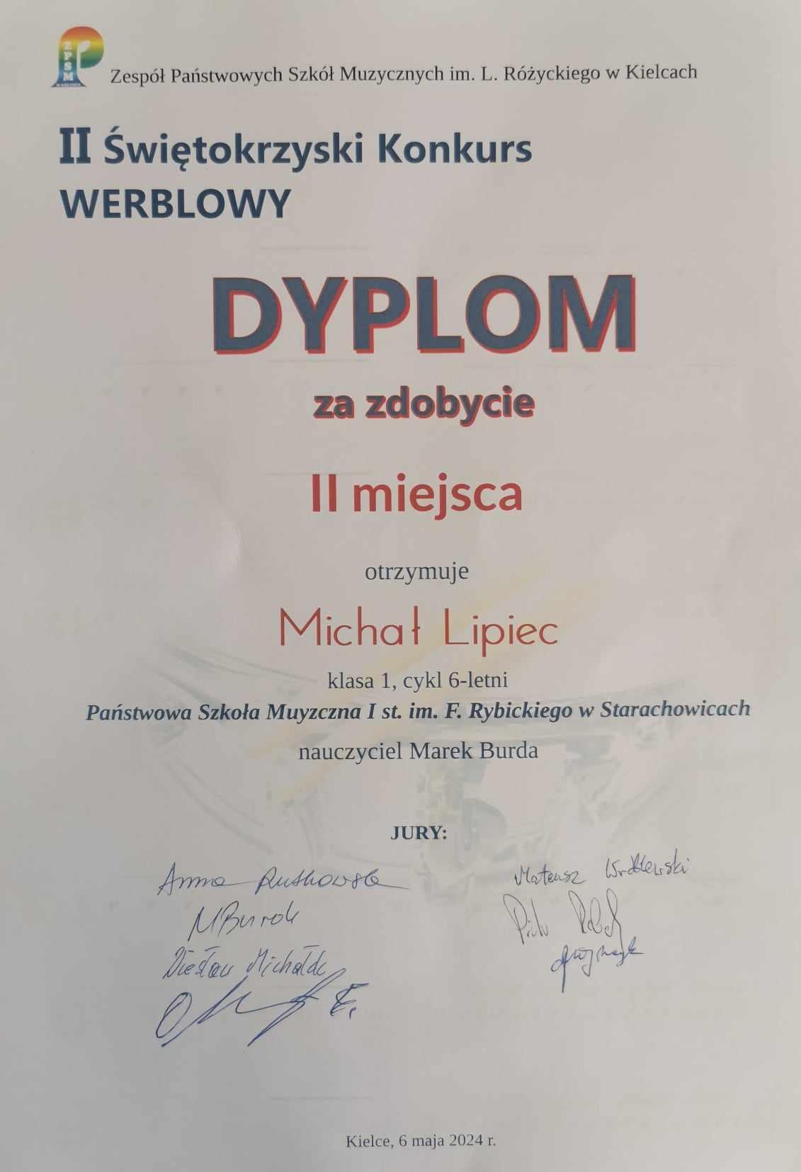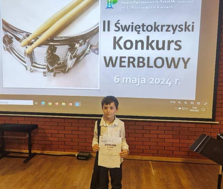 6 maja 2024 r. uczniowie Amelia Jaros oraz Michał Lipiec wzięli udział w II Świętokrzyskim Konkursie Werblowym na którym zajęli: Michał - II miejsce w grupie I , a Amelia - III miejsce w grupie II. Serdecznie gratulujemy uczniom oraz ich nauczycielowi p. Markowi Burdzie.