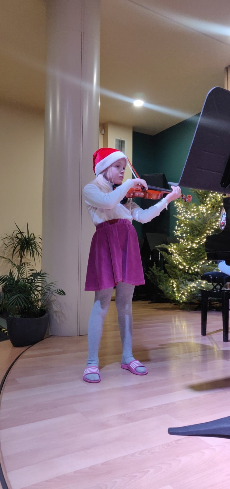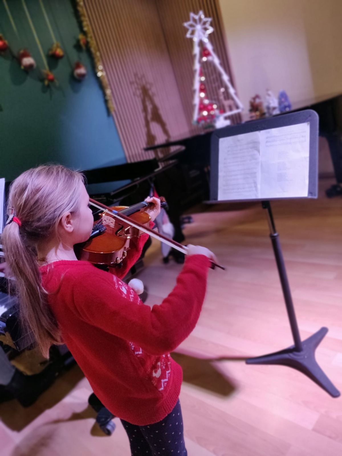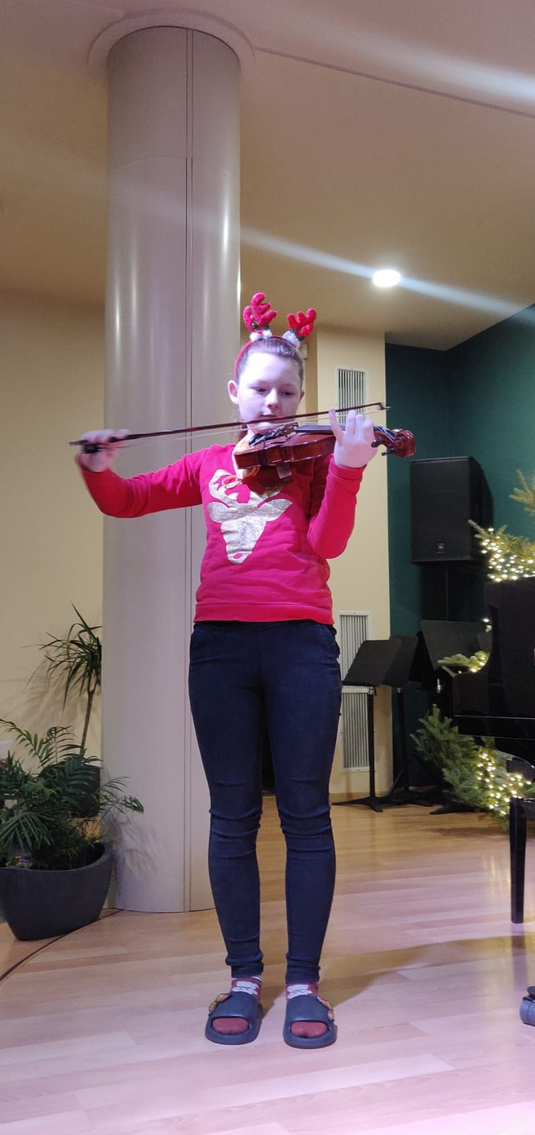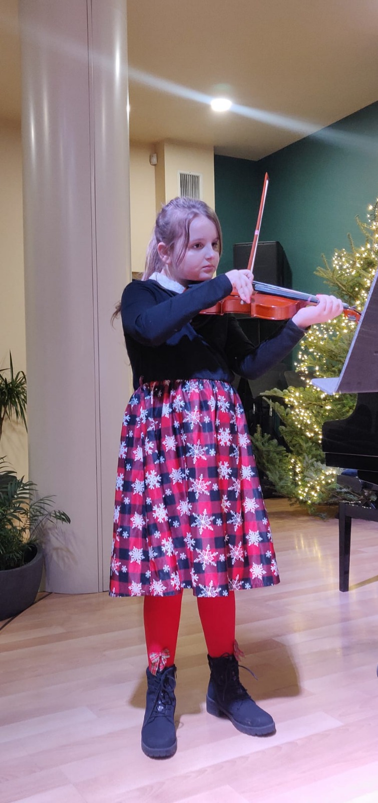 Młodzi skrzypkowie zachwycili publiczność swoimi występami, grając znane melodie i wprowadzając wszystkich w świąteczny nastrój. Każdy uczeń wykazywał się nie tylko precyzją i techniką, ale także radością płynącą z grania.