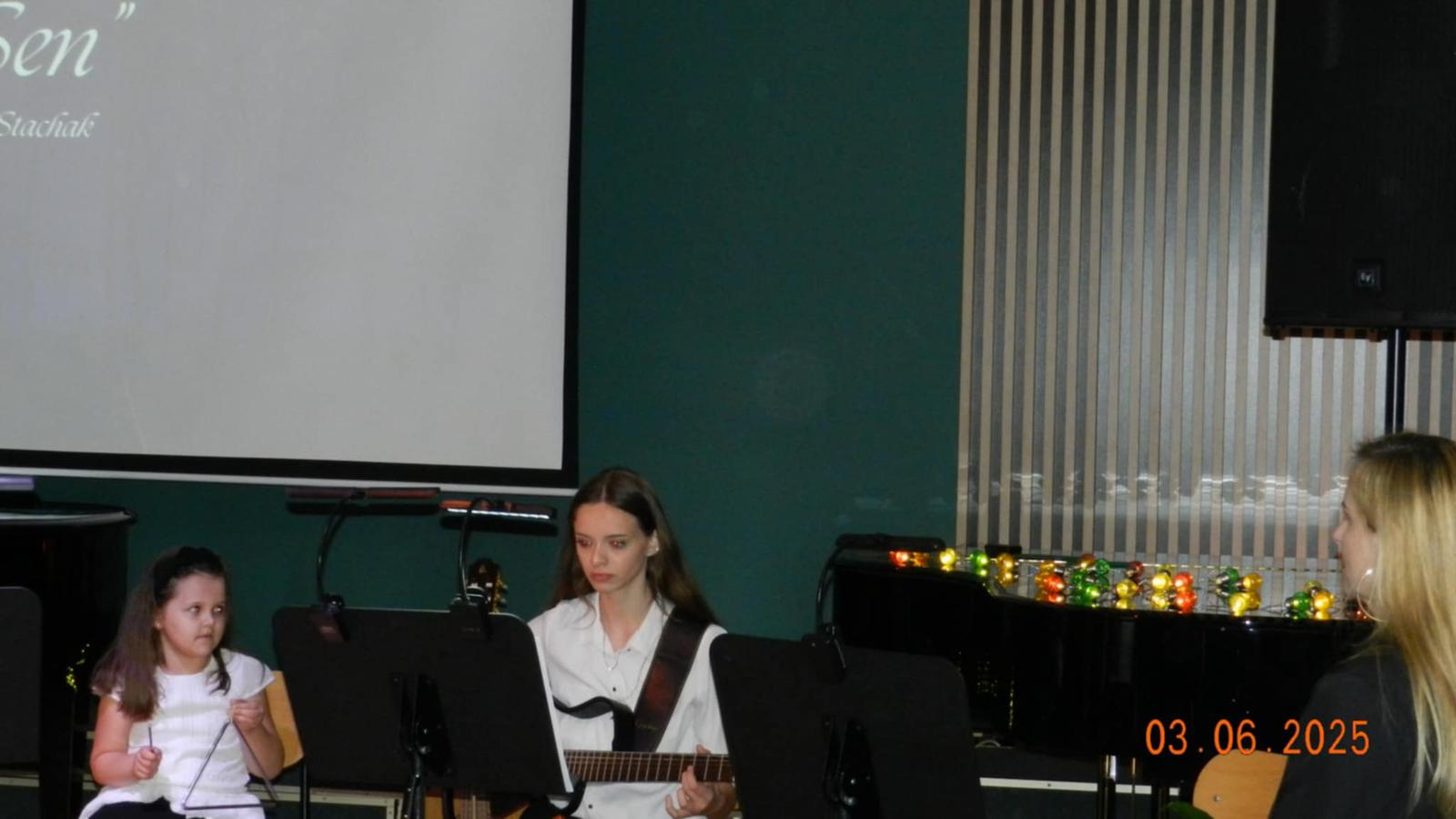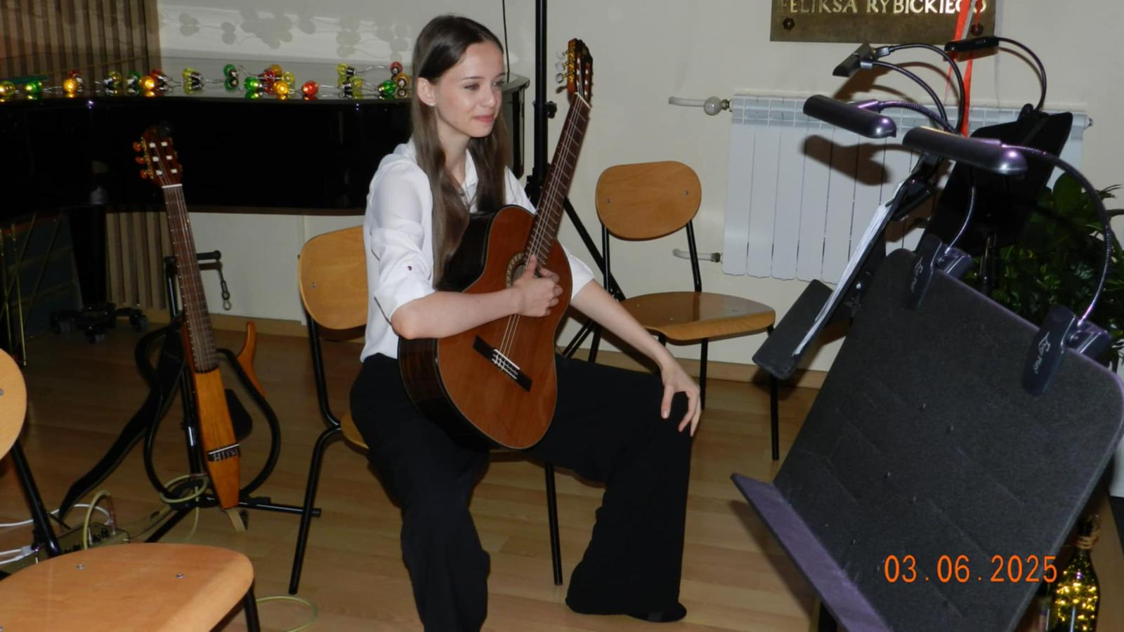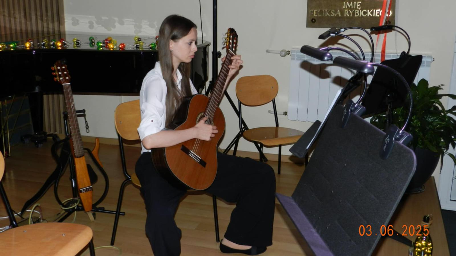 3 czerwca w sali koncertowej naszej szkoły odbył się koncert dyplomowy gitarzystki Mai Kacperskiej. Gratulacje dla Mai i nauczyciela klasy gitary p. Dariusza Wróbla. Koncert prowadziła pani Maja Kacperska a na trójkącie grała Pola Kacperska. Poniżej znajduje się fotorelacja. Zdjęcia umieszczamy za zgodą rodziny Kacperskich z fotoalbumu rodzinnego.