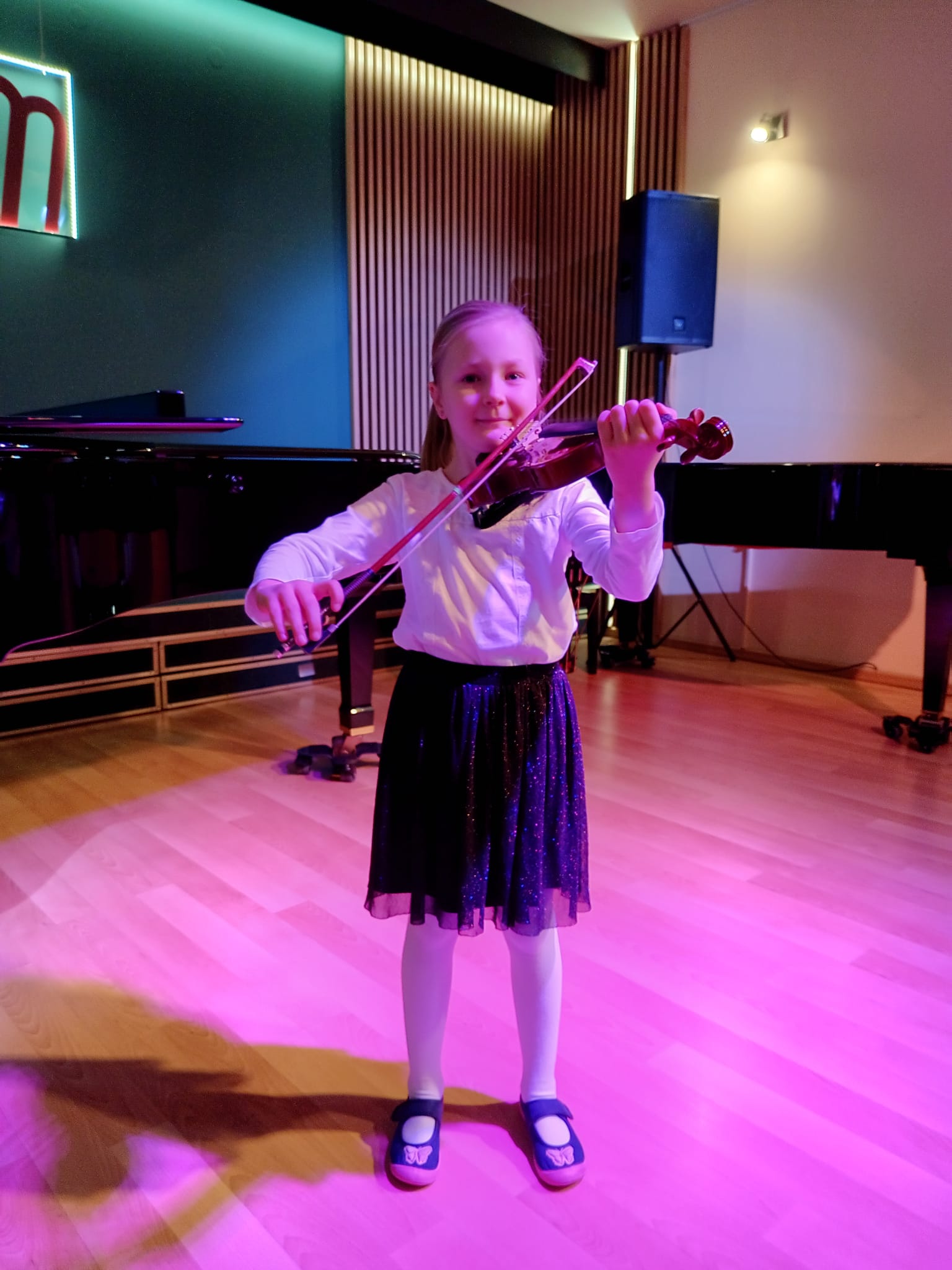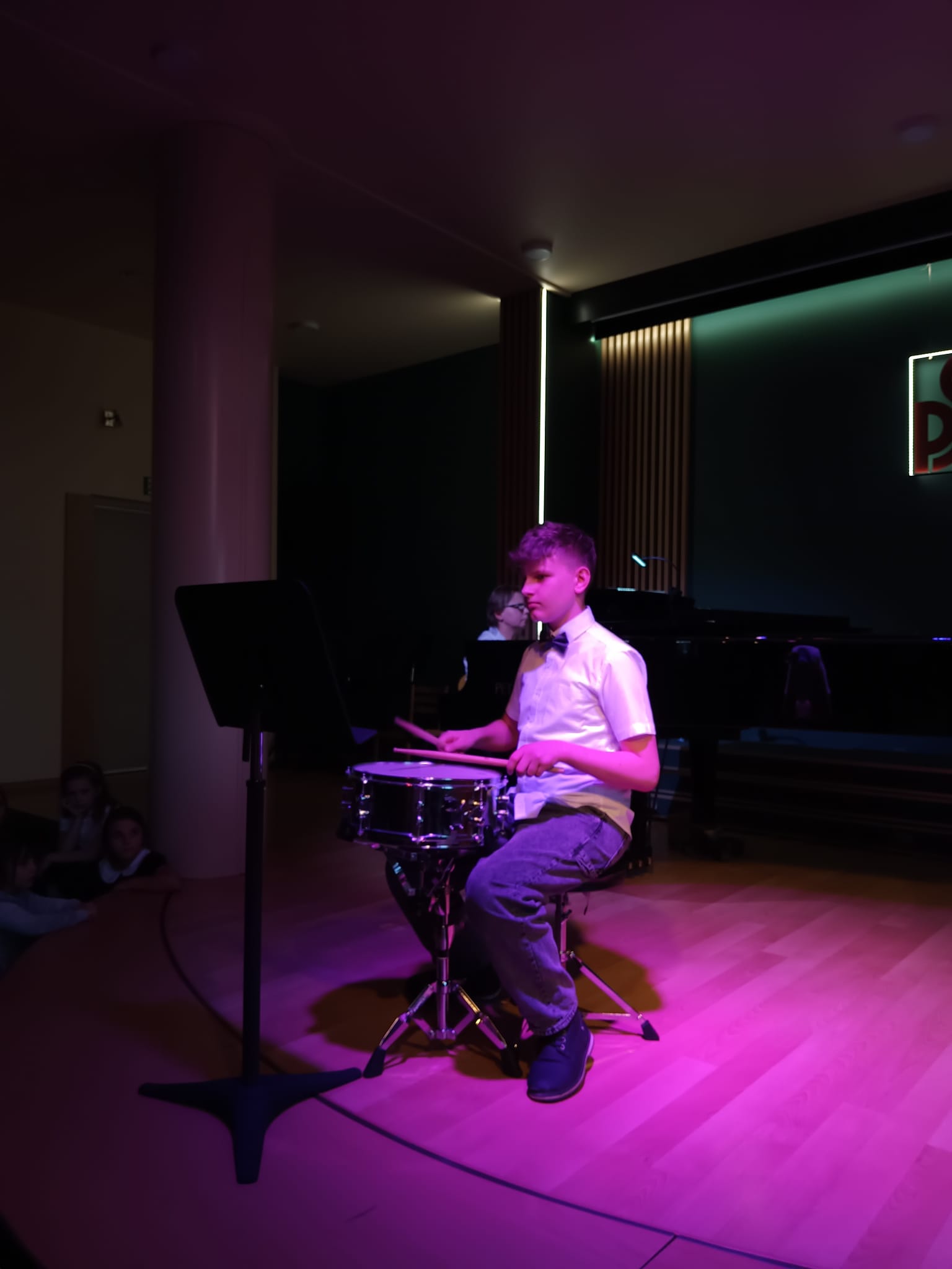 26 marca 2024 roku odbył się w naszej szkole uroczysty koncert w którym brali udział uczniowie klas pierwszych. Koncert był bardzo entuzjastycznie przyjęty przez publiczność zgromadzoną w naszej szkole. Podczas koncertu mogliśmy podziwiać świeżo wyremontowaną salę koncertową. Na koniec koncertu wszyscy uczestnicy zostali uwiecznieni na zdjęciu pamiątkowym które poniżej prezentujemy. Wszystkim uczniom gratulujemy pięknych wykonań.