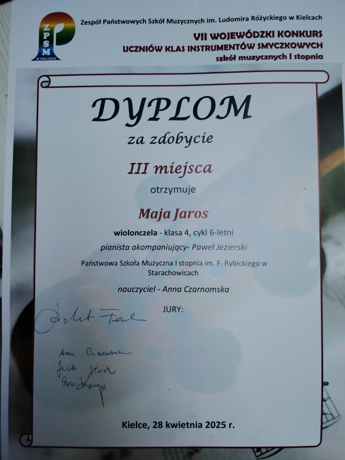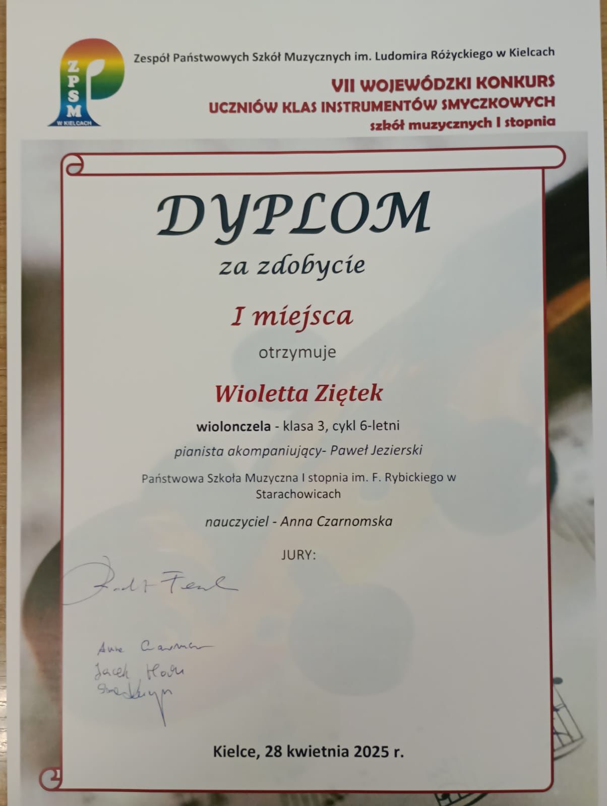 28 kwietnia 2025 roku odbyła się VII edycja Wojewódzkiego Konkursu Instrumentów Smyczkowych.