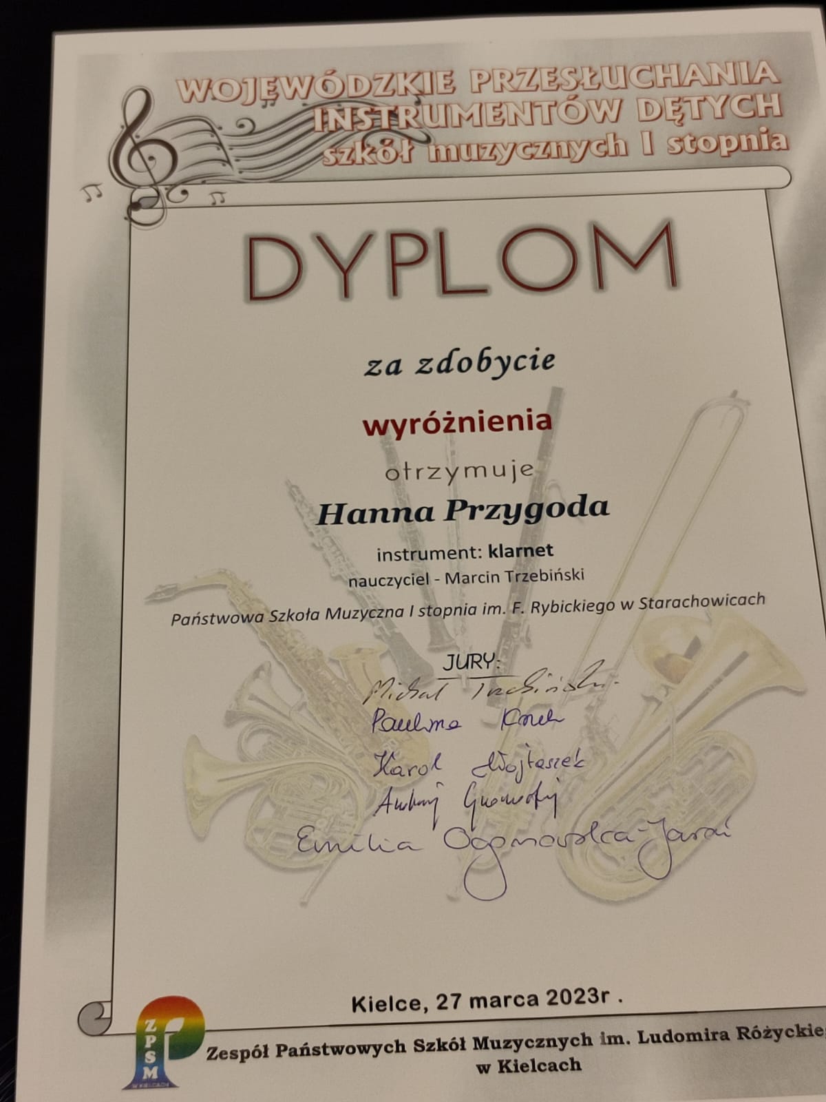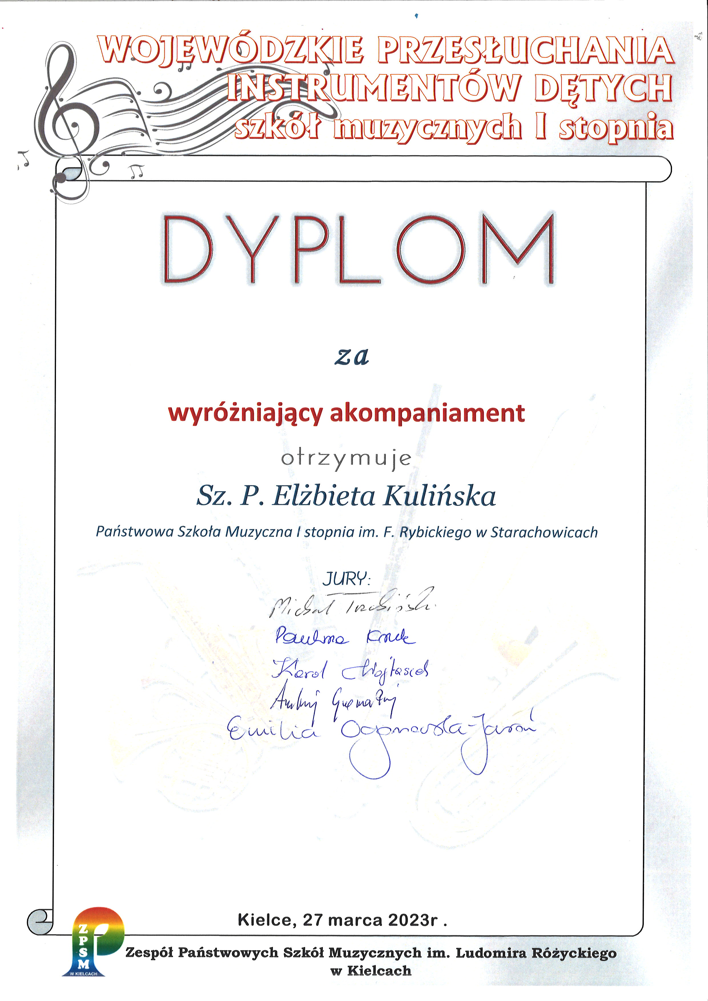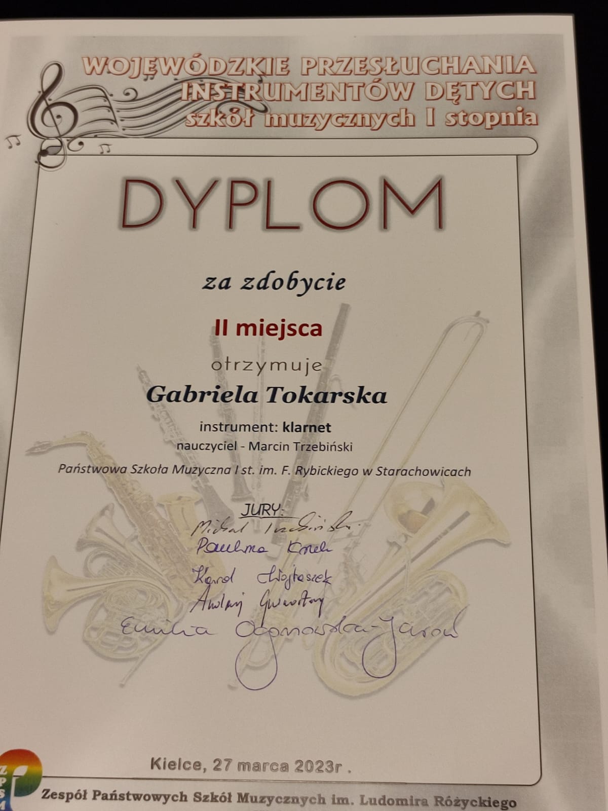 W dniu 27 marca 2023 roku odbyły się Wojewódzkie Przesłuchania Instrumentów Dętych szkół muzycznych I stopnia organizowany przez ZPSM im. Ludomira Różyckiego w Kielcach.