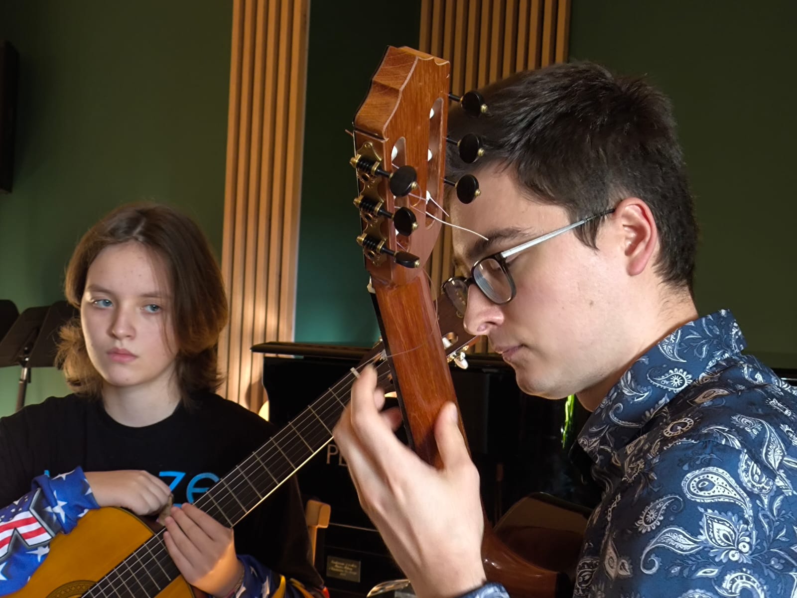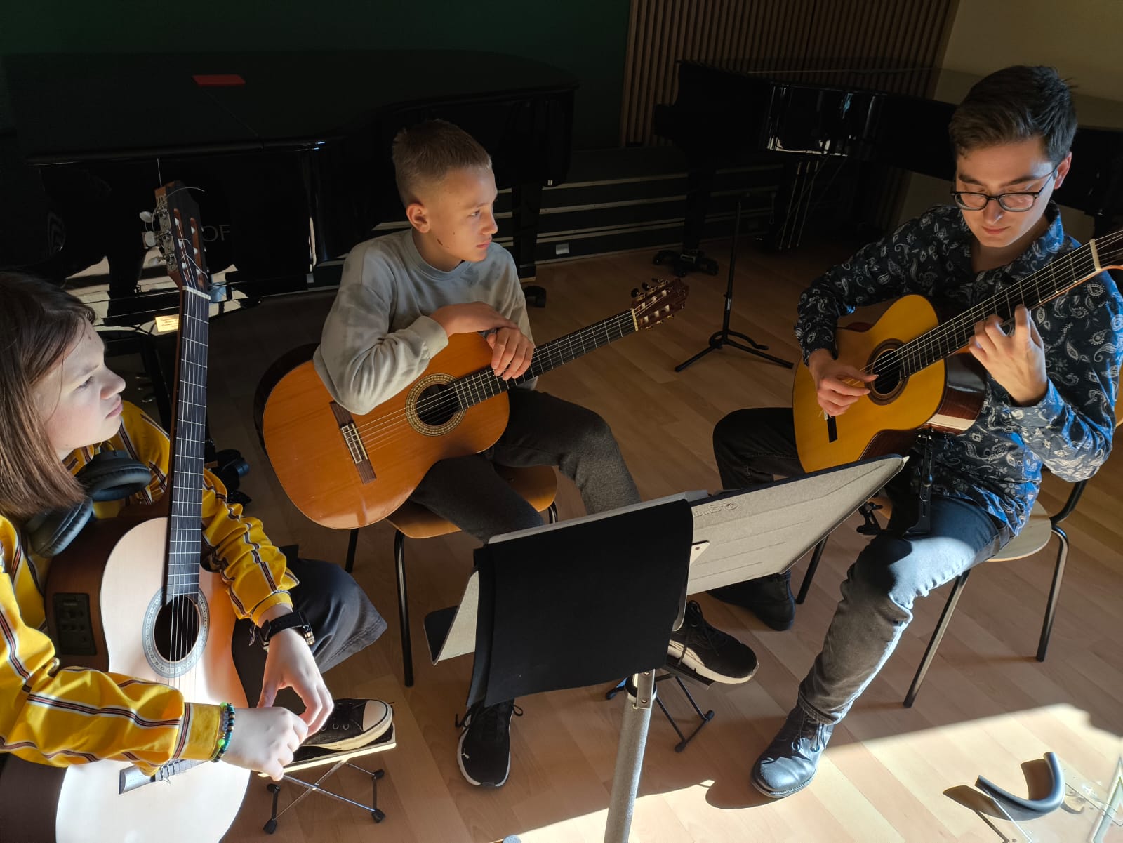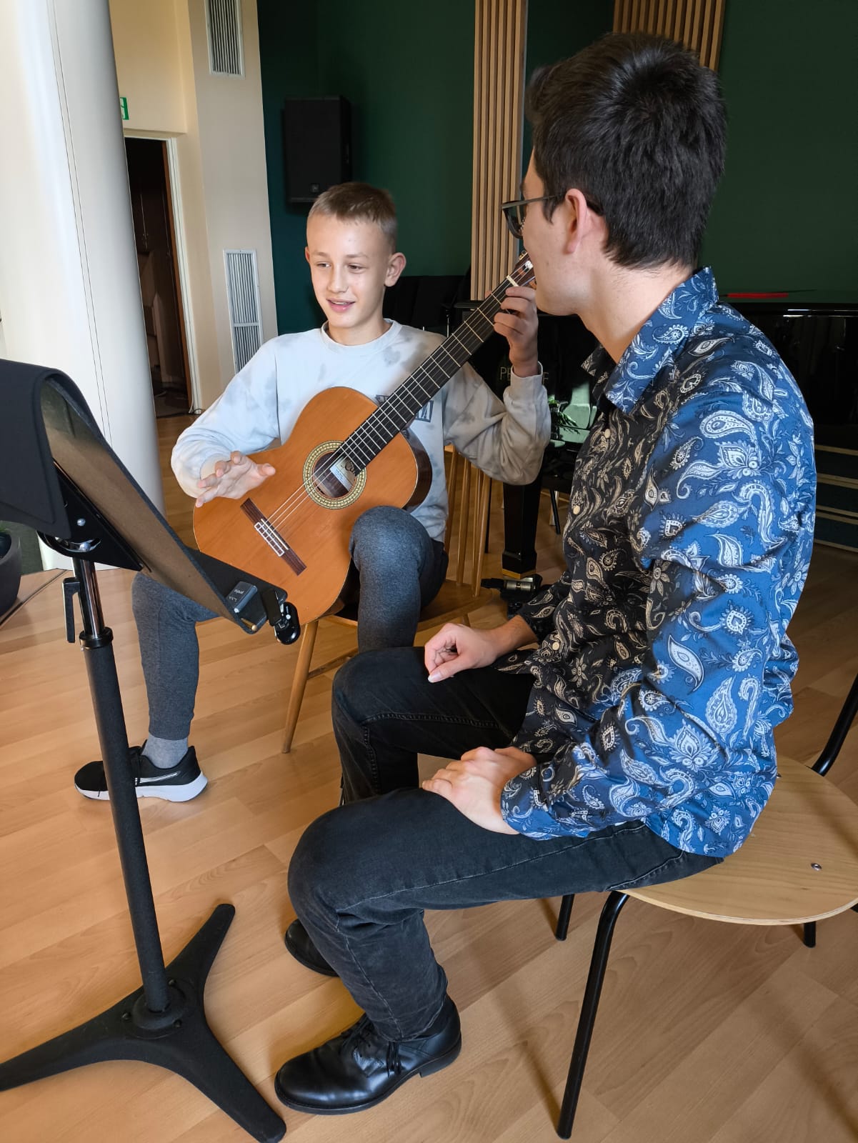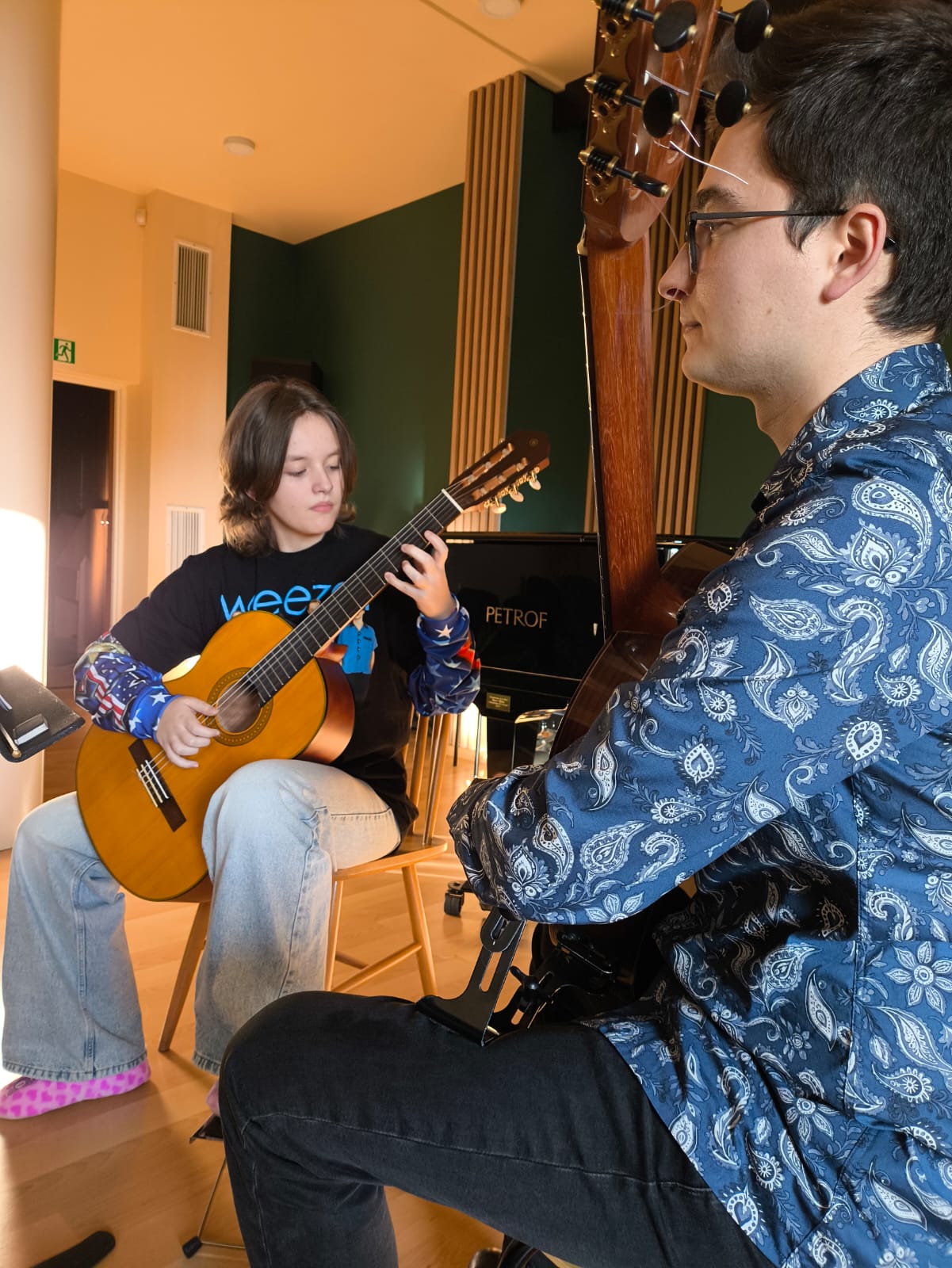 Uczestnicy mieli okazję pracować nad techniką gry, interpretacją utworów oraz poznawać tajniki muzycznej ekspresji. Atmosfera warsztatów była pełna zaangażowania i inspiracji, a indywidualne podejście prowadzącego pozwoliło każdemu uczniowi na rozwój swoich umiejętności. Zajęcia były doskonałą okazją do wymiany doświadczeń oraz integracji młodych muzyków.