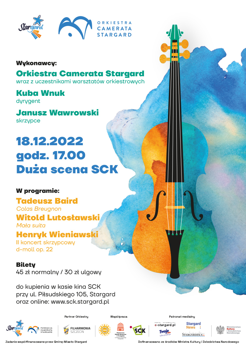 W dniach od 14 do 18 grudnia 2022 roku odbywać się będą w naszej szkole warsztaty z Orkiestrą Camerata Stargard.