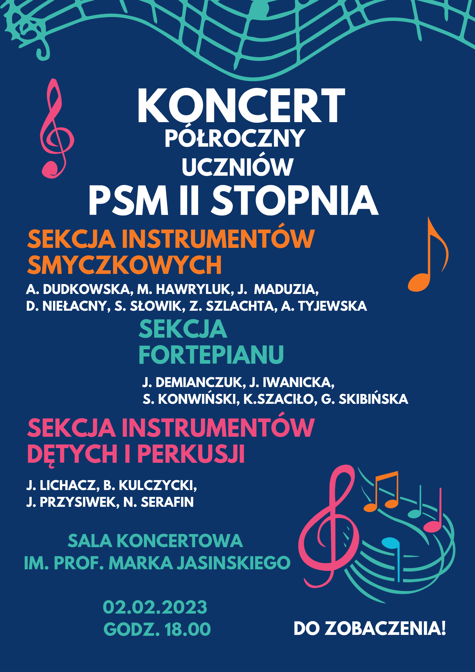 Zapraszamy 2 lutego 2023 na koncert w wykonaniu uczniów Państwowej Szkoły Muzycznej II stopnia