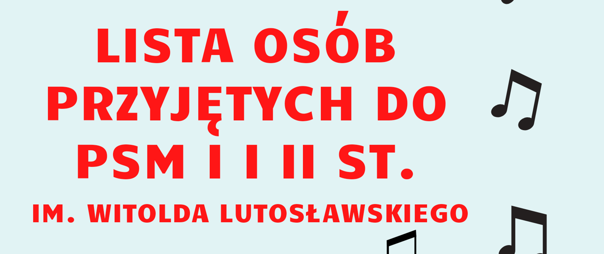 21.06.2023Lista osób przyjętych w wyniku rekrutacji do PSM I i II st.Jest już dostępna na tablicy ogłoszeń w szkole.