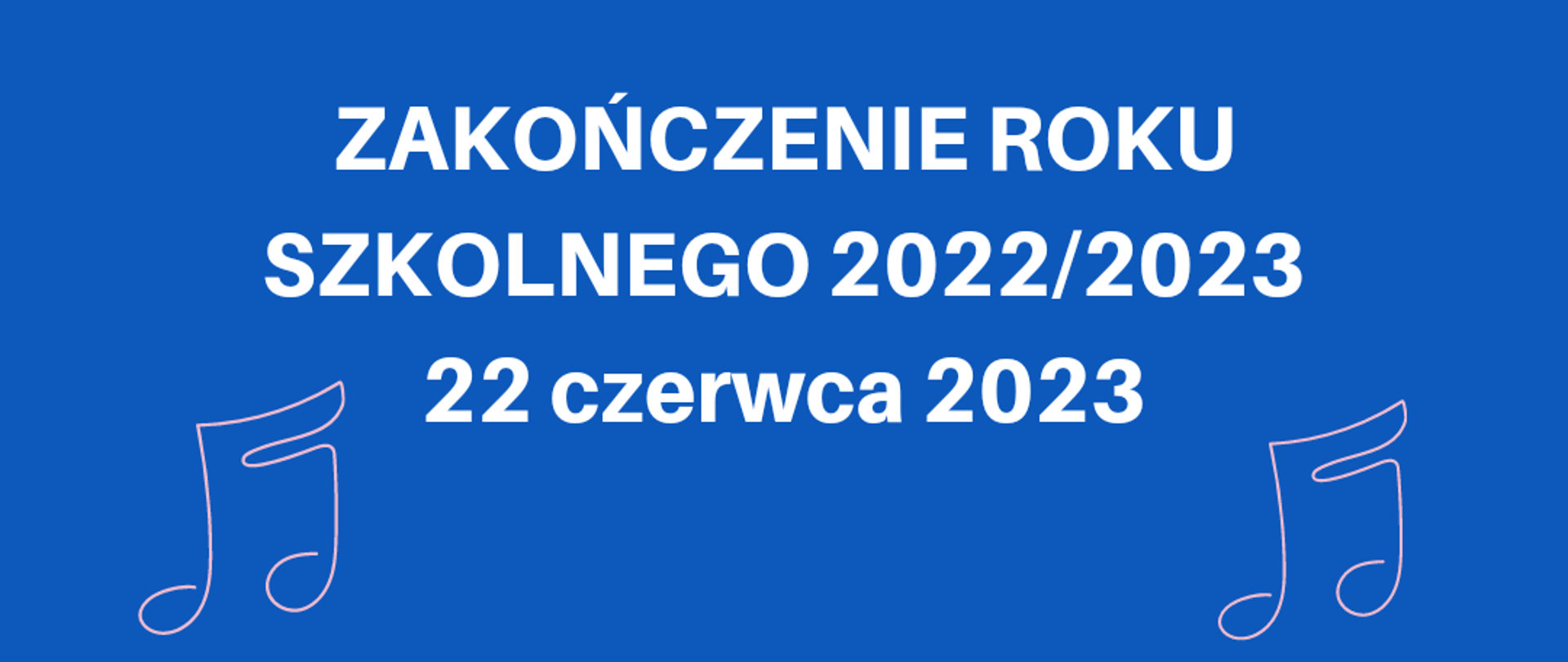 15.05.2023Zakończenie roku szkolnego 2022/2023 we czwartek 22 czerwca 2023W harmonogramie zakończenia podane są dwie godziny - dla starszych uczniów godzina 14.00 i dla młodszych godzina 16.30.