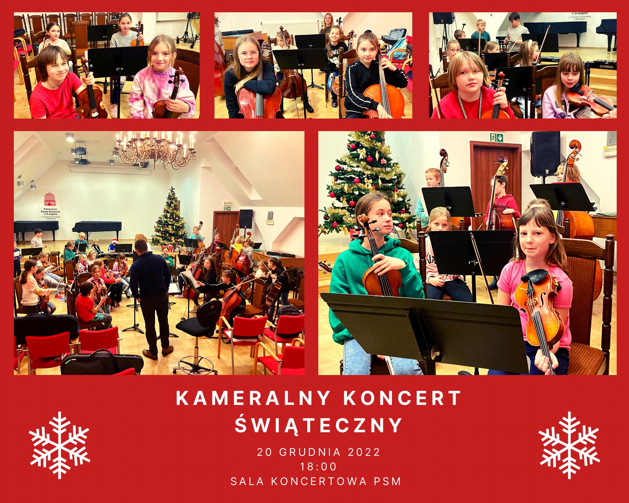 Pierwszy to Kameralny koncert świąteczny - 20 grudnia we wtorek o godzinie 18:00, na którym wystąpi nasza mała orkiestra złożona z uczniów PSM I st. oraz OSM I st., big band i szkolne zespoły kameralne.