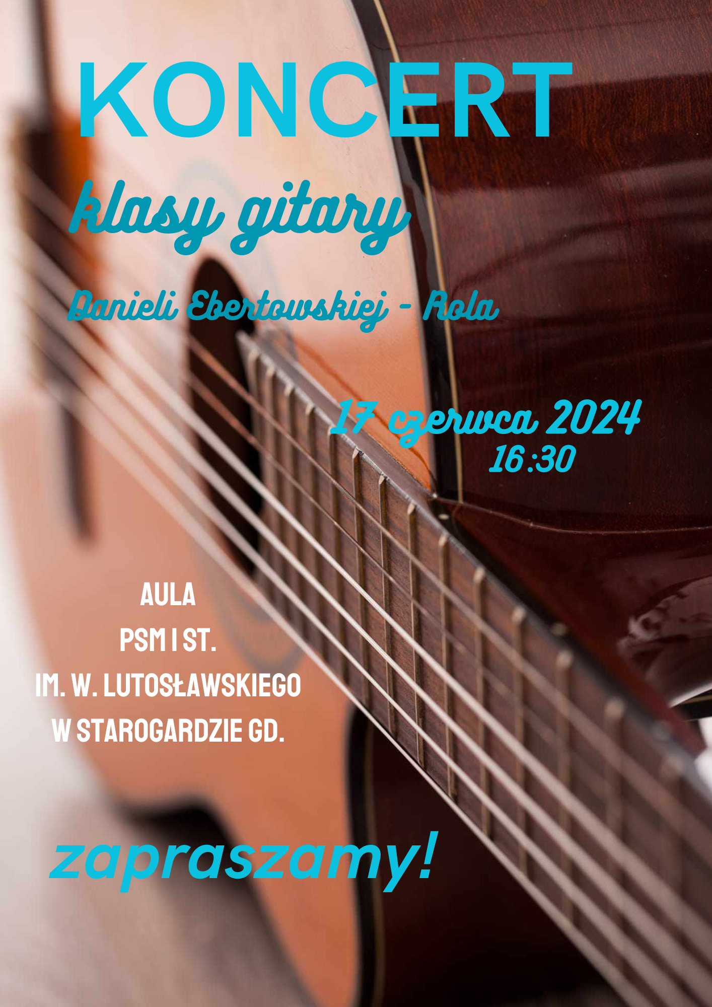 Zapraszasmy na koncert naszych uczniów klasy gitary pani Danieli Ebertowskiej - Rola w dniu 17 czerwca 2024r. o godz. 16:30.