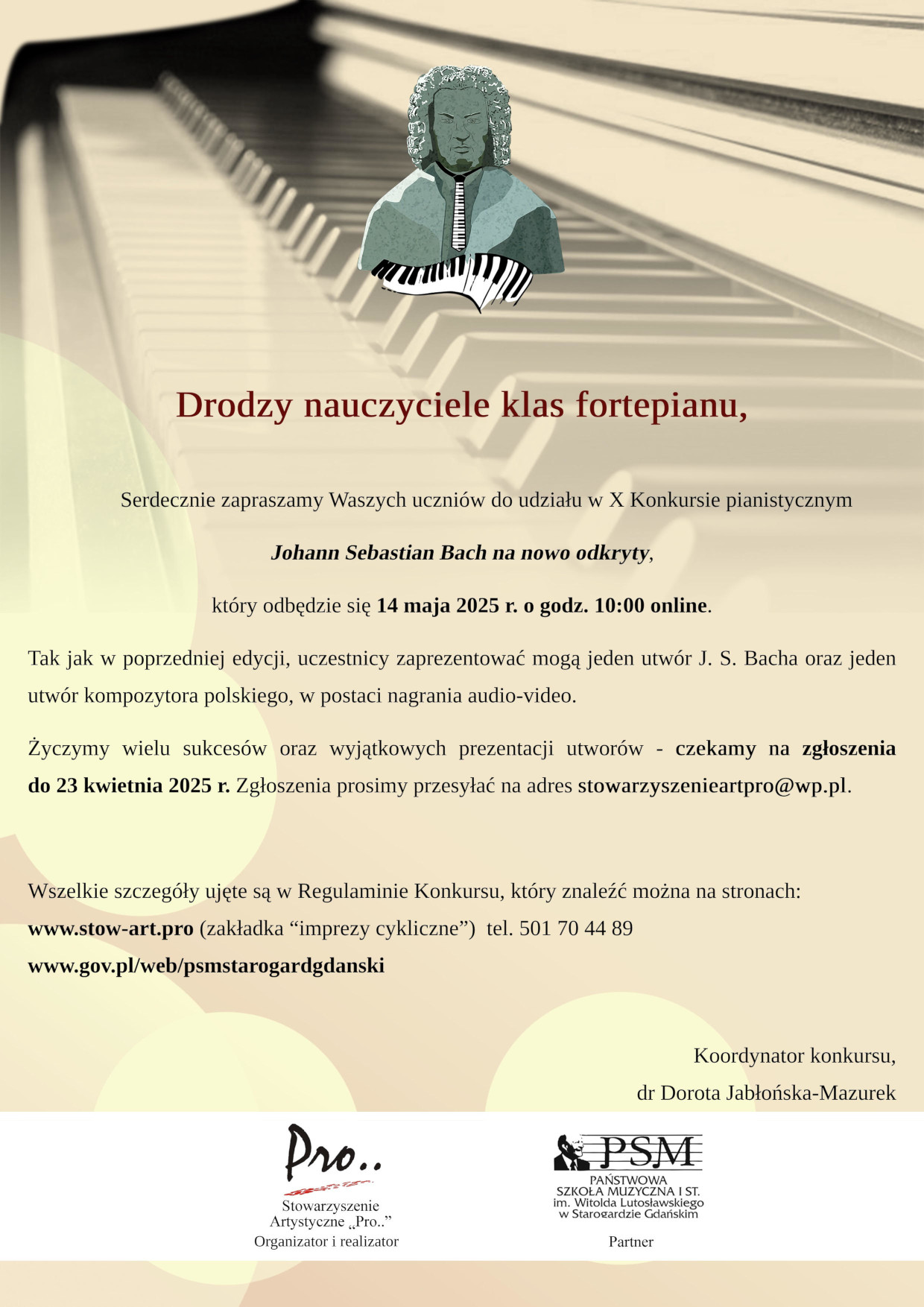 STRONA organizatora i realizatora konkursu - Stowarzyszenie Artystyczne „Pro..”Ragulamin X Konkursu Pianistycznego J.S.Bach na nowo odkryty