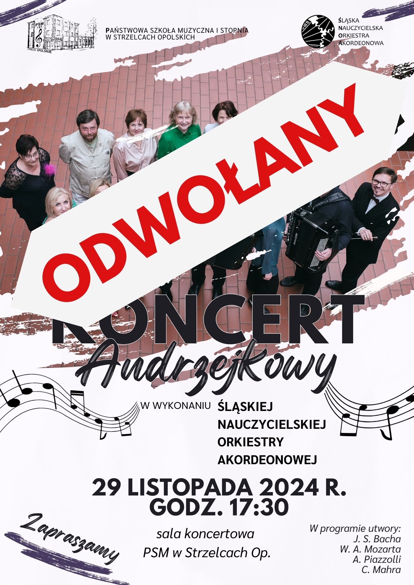 Z przykrością informujemy, że Koncert Andrzejkowy z przyczyn niezależnych od organizatora został odwołany.