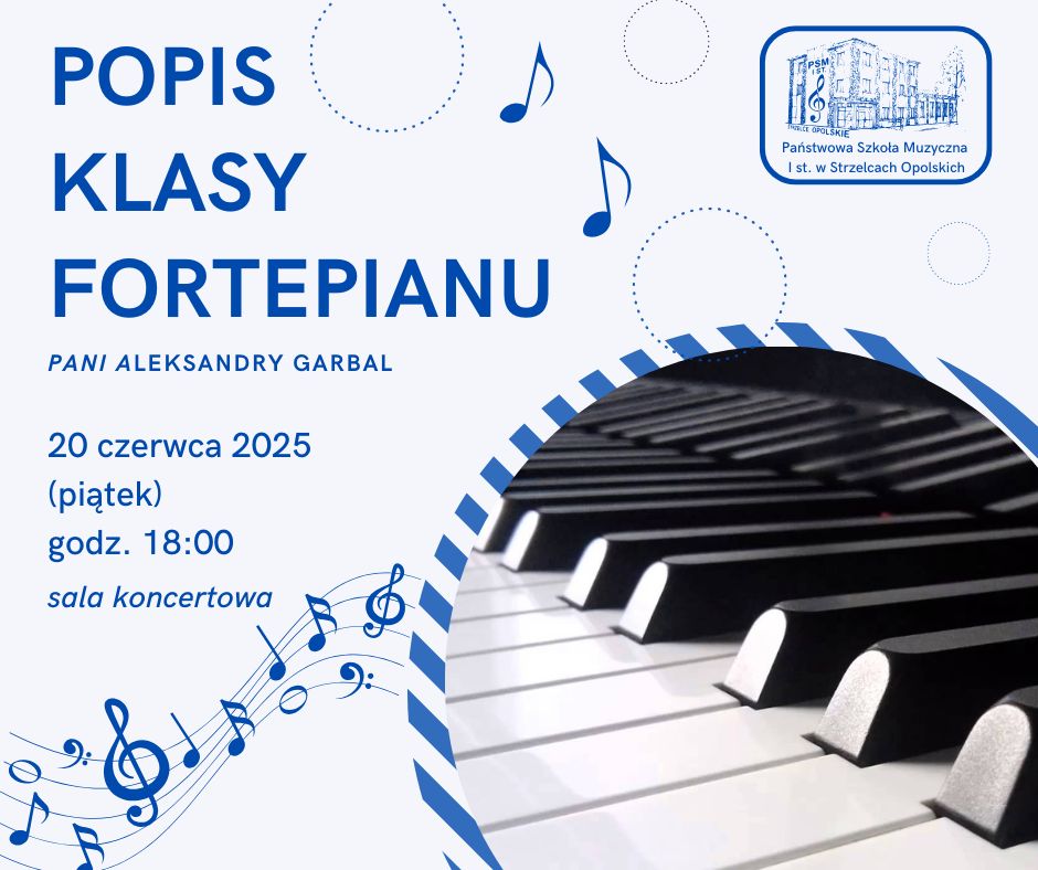 Popis klasy fortepianu pani A. Garbal 20 czerwca 2025 w sali koncertowej godzina 18:00