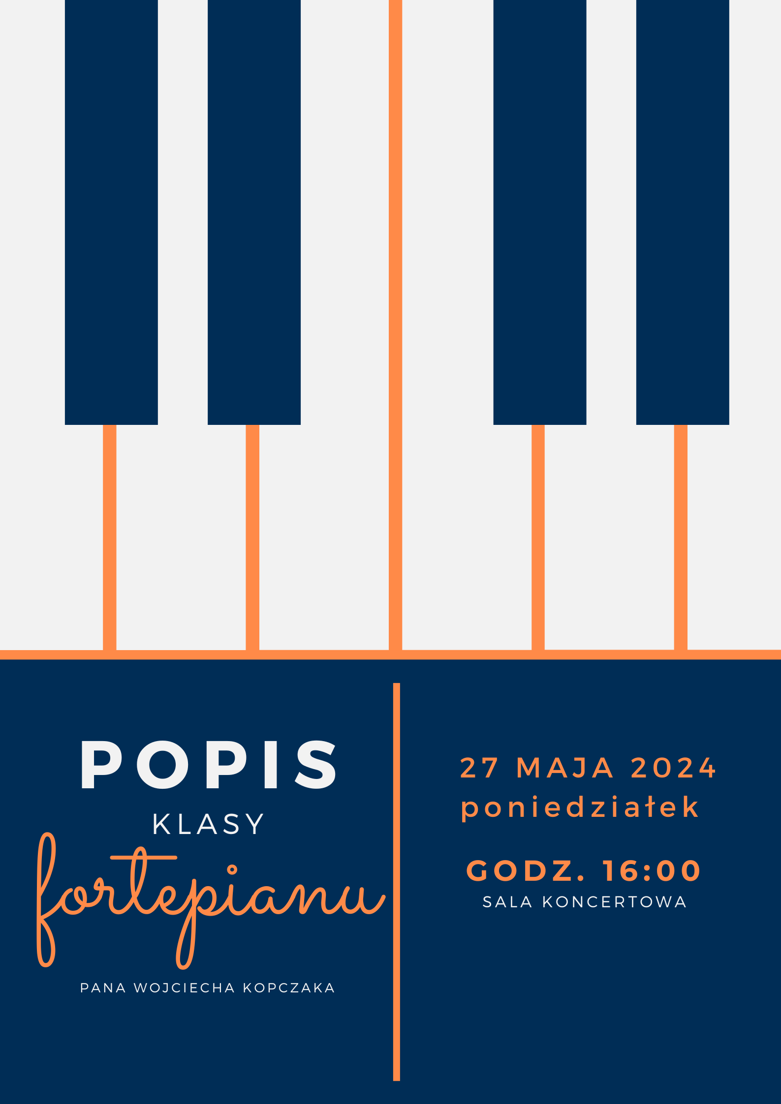 Klawisze na granatowym tle, popis klasy fortepianu