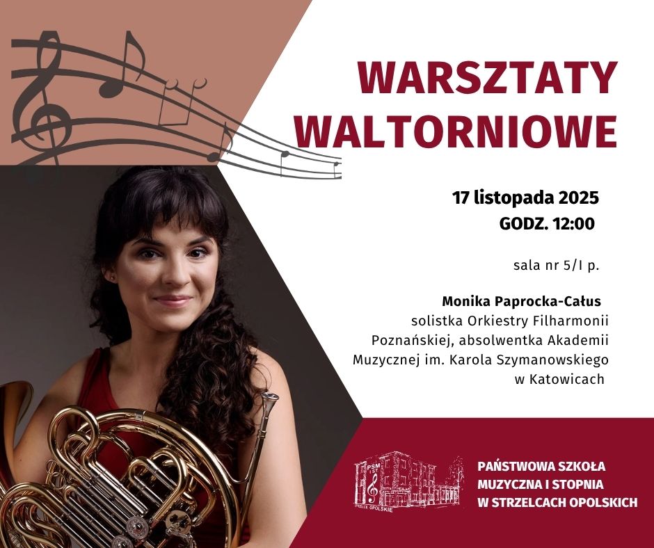 Zaproszenie na warsztaty waltorniowe 17 listopada o godz. 12:00 które poprowadzi mgr Monika Paprocka - Całus
