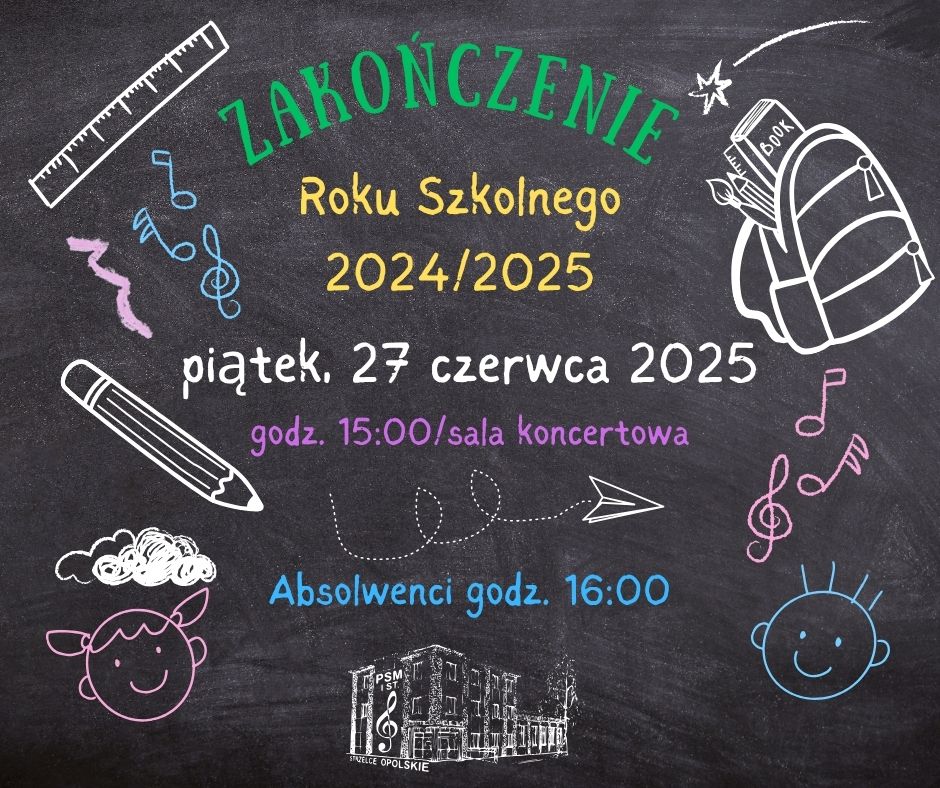 Zakończenie roku szkolnego 2024/2025 27 czerwca 2025, godz. 15:00