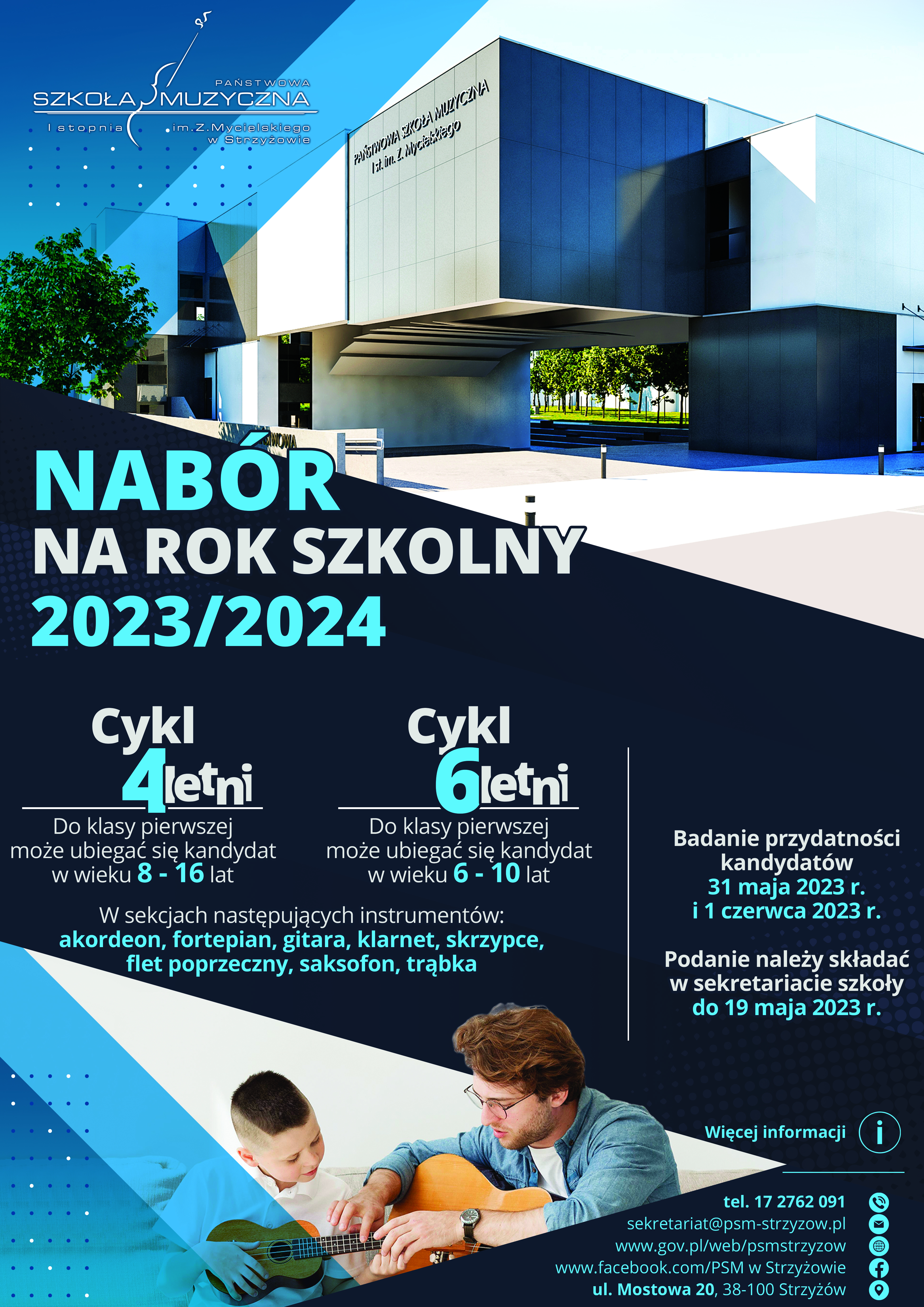 Państwowa Szkoła Muzyczna I stopnia im. Zygmunta Mycielskiego w Strzyżowie przeprowadza co roku rekrutację kandydatów do: