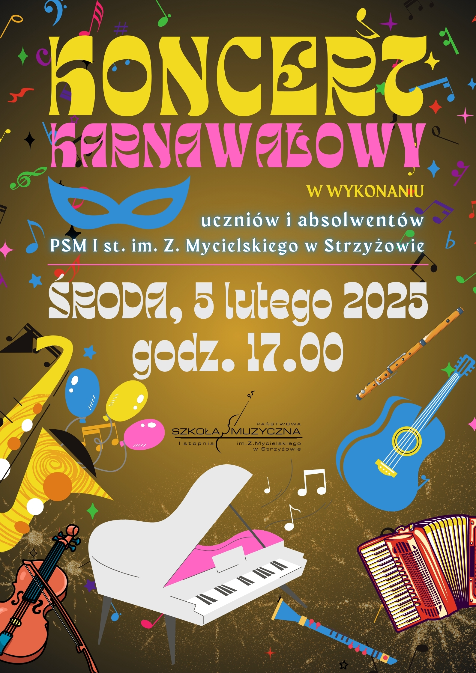 Koncert karnawałowy Koncert karnawałowy 2025-02-05 17:00 , KIEDY 05 lutego 2025 (środa) godz 17:00 DODAJ DO KALENDARZA Zdjęcia (1) Pokaż zdjęcie 1 z galerii.