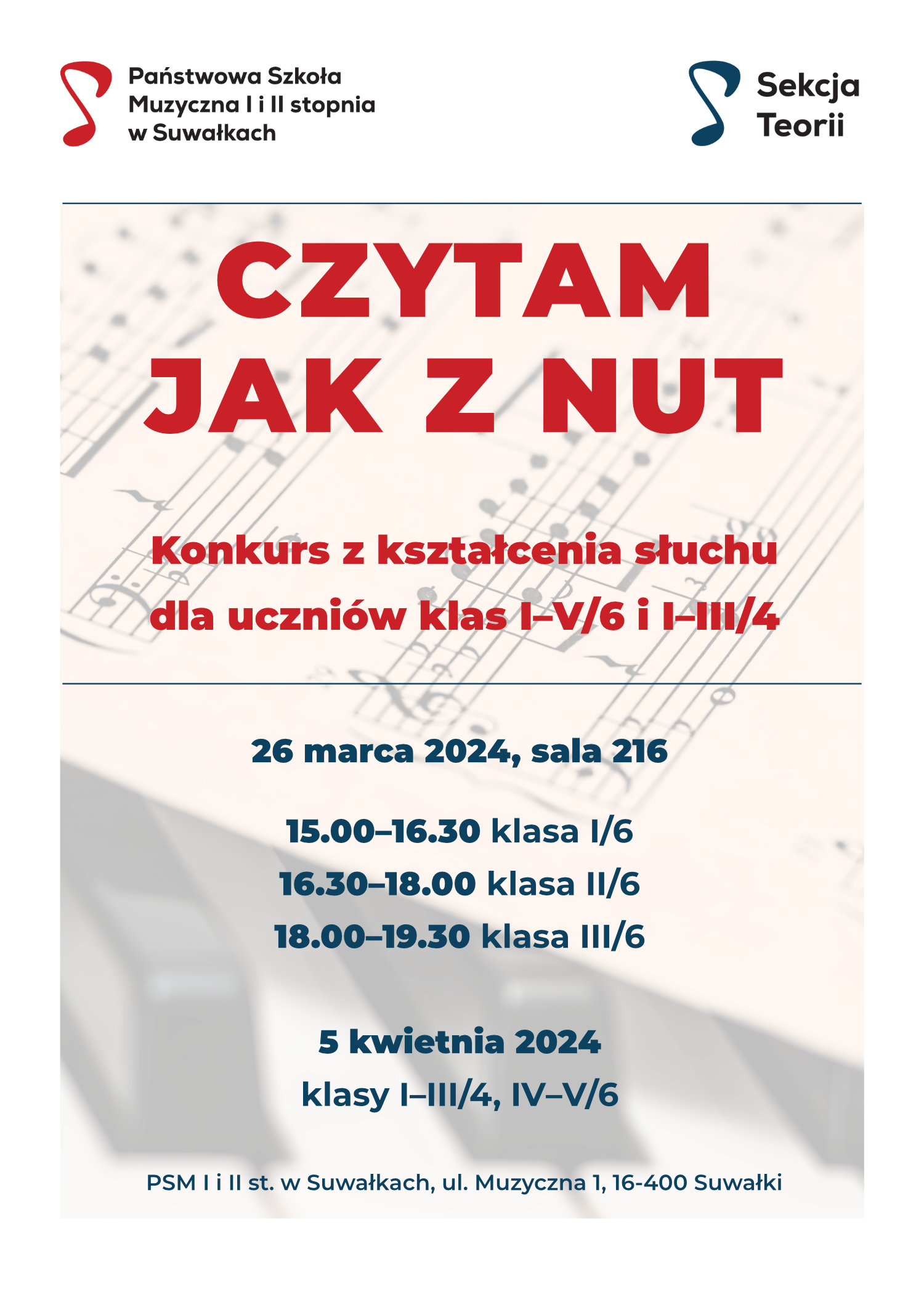 Konkurs z kształcenia słuchu dla uczniów klas I–V/6 i I–III/4