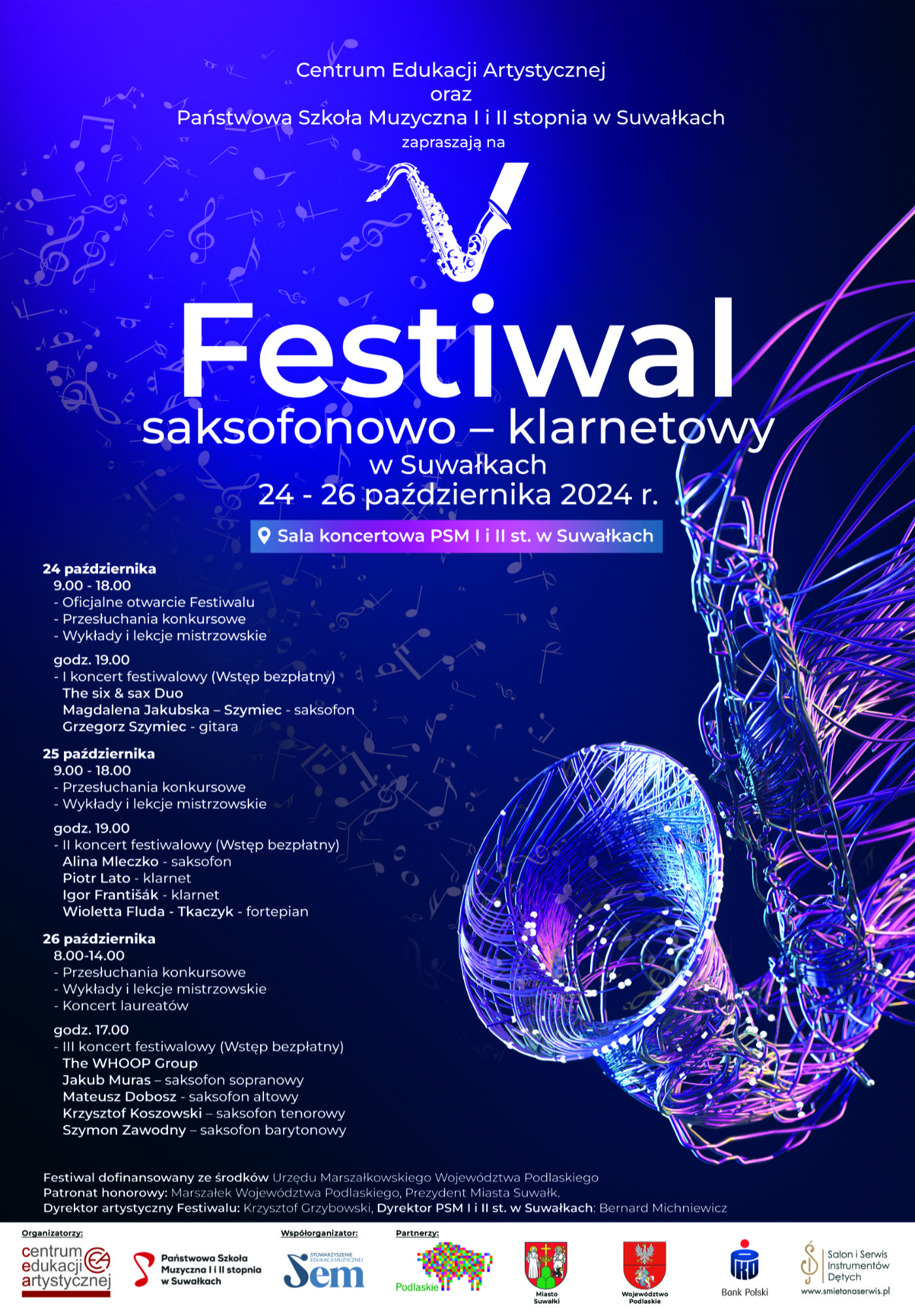 V Festiwal saksofonowo–klarnetowy w Suwałkach 2024, 24-26.10.2024