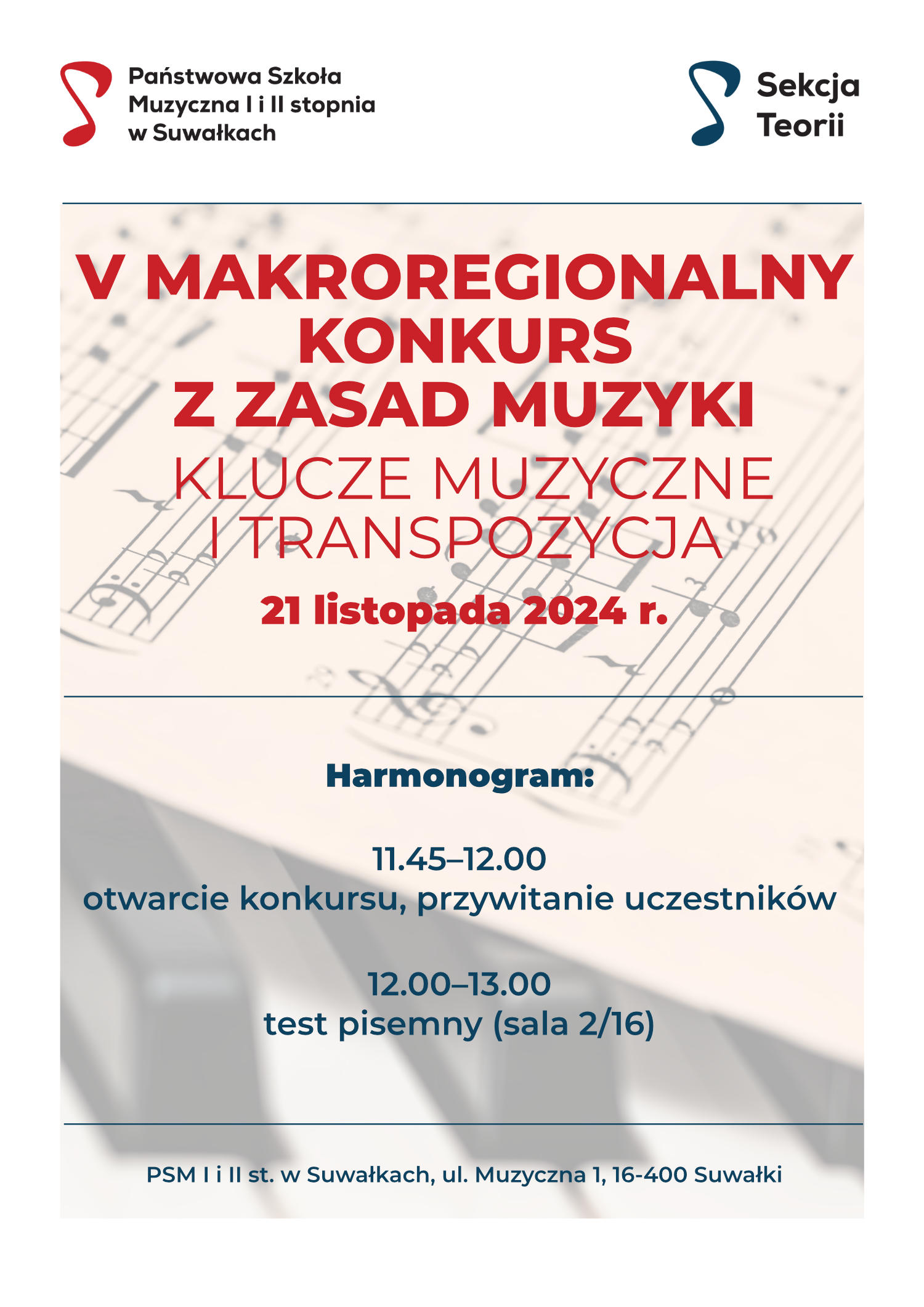 V Makroregionalny Konkurs z Zasad Muzyki - Klucze muzyczne i transpozycja. 21.11.2024 r.