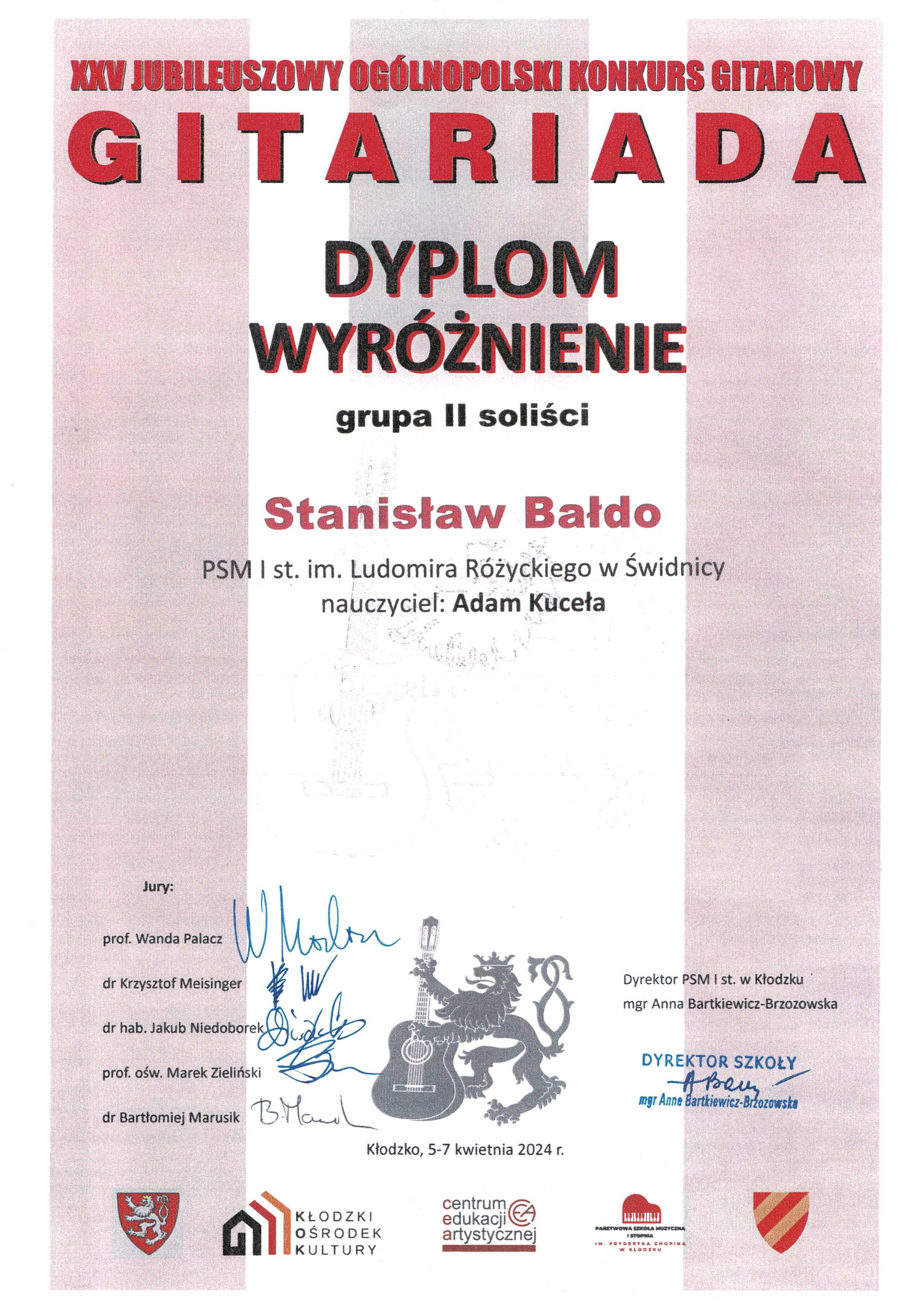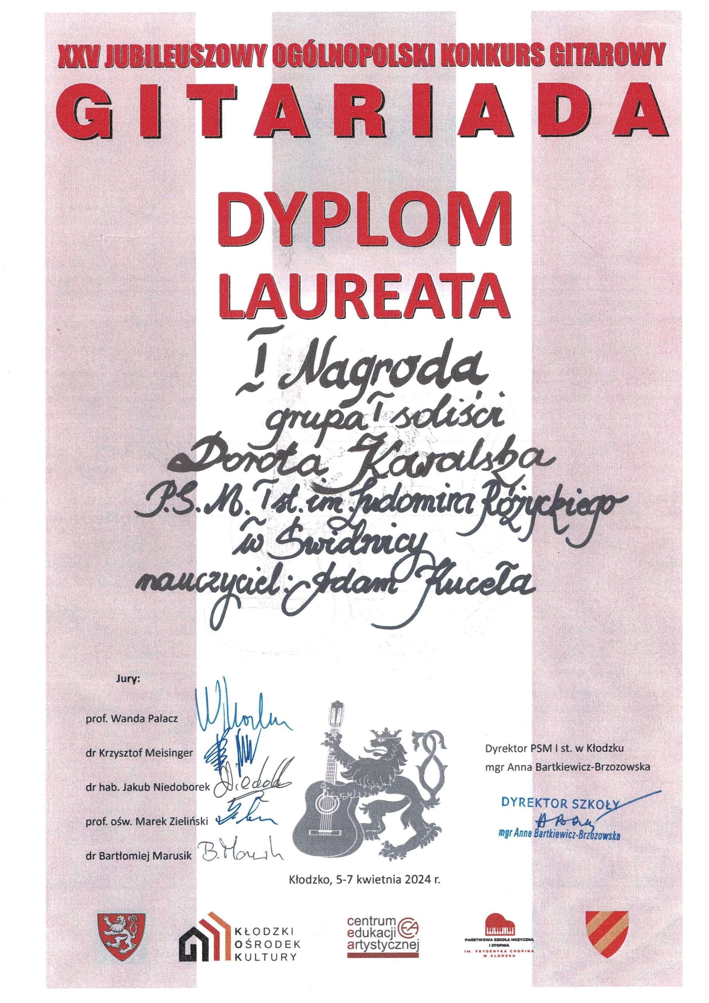 Nasi wspaniali Gitarzyści z klasy Pana Adama Kuceły, Dorota Kowalska oraz Stanisław Bałdo, pięknie zaprezentowali się w Kłodzku podczas XXV Ogólnopolskiego Konkursu Gitarowego Gitariada, zdobywając takie nagrody.