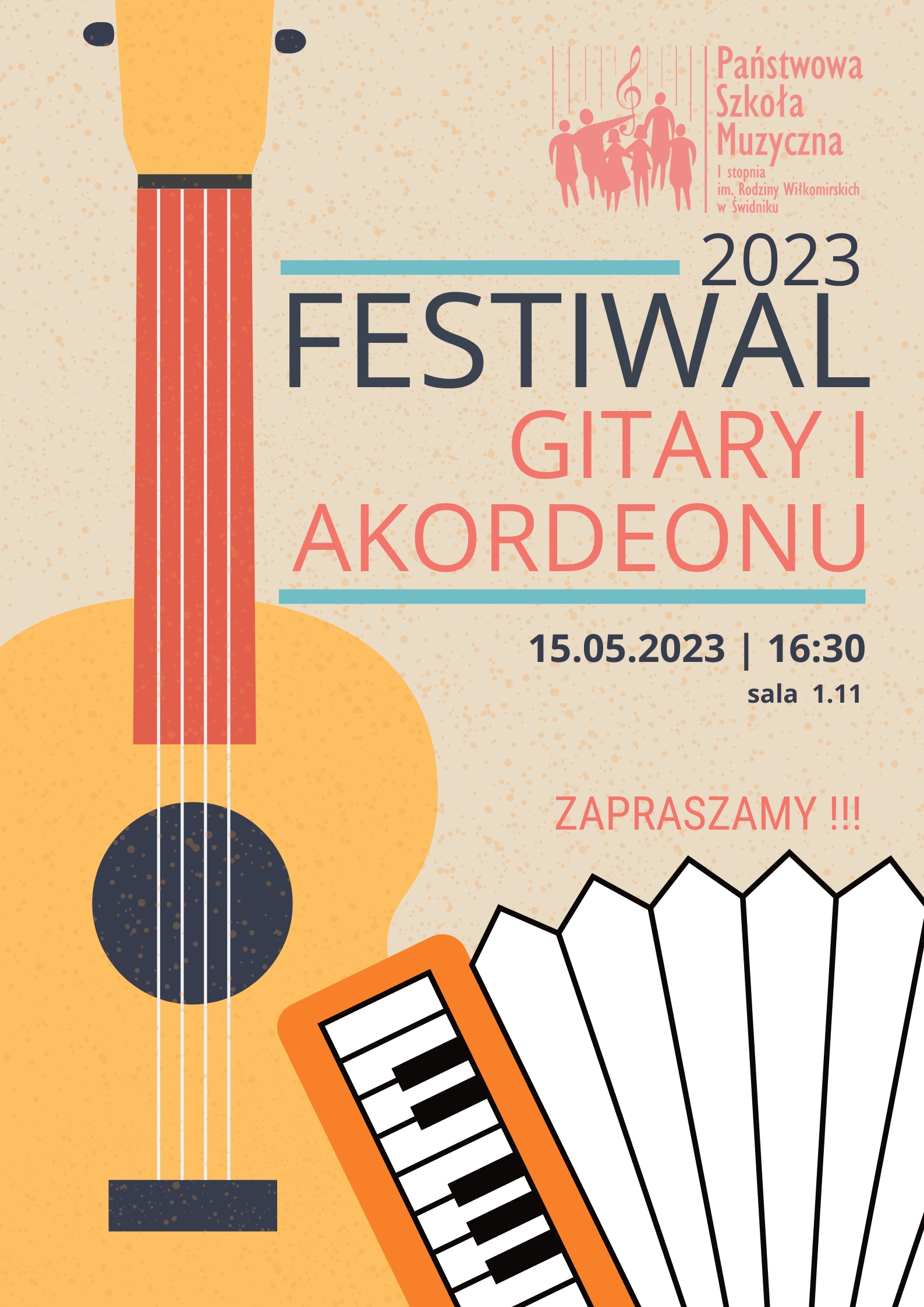Zapraszamy na Festiwal Gitary i Akordeonu w dniu 15 maja 2023 r. o godz. 16.30. s. 1.11