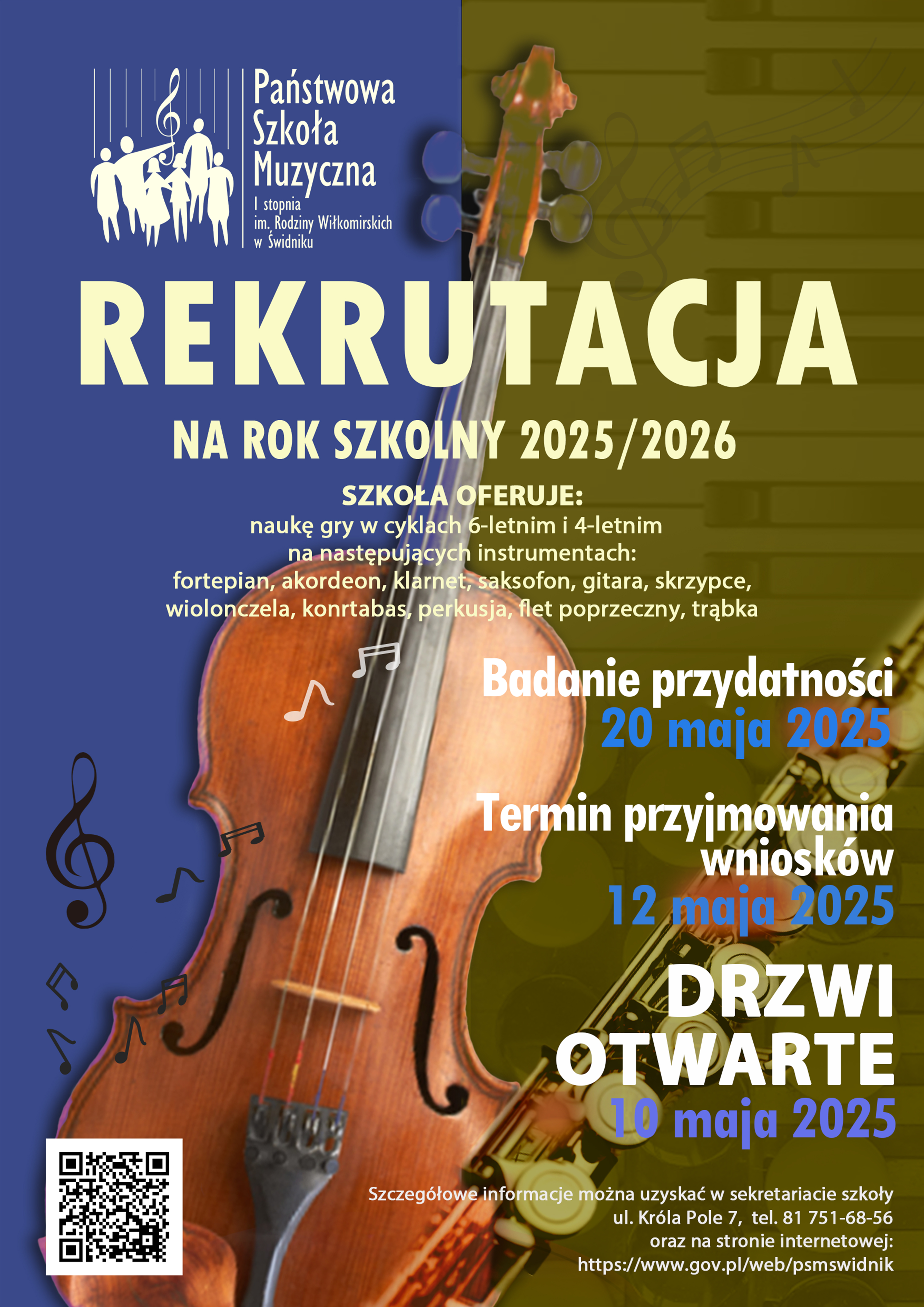 Wnioski przyjmowane będą tylko w komplecie z zaświadczeniem lekarskim o braku przeciwskazań do nauki w szkole muzycznej.