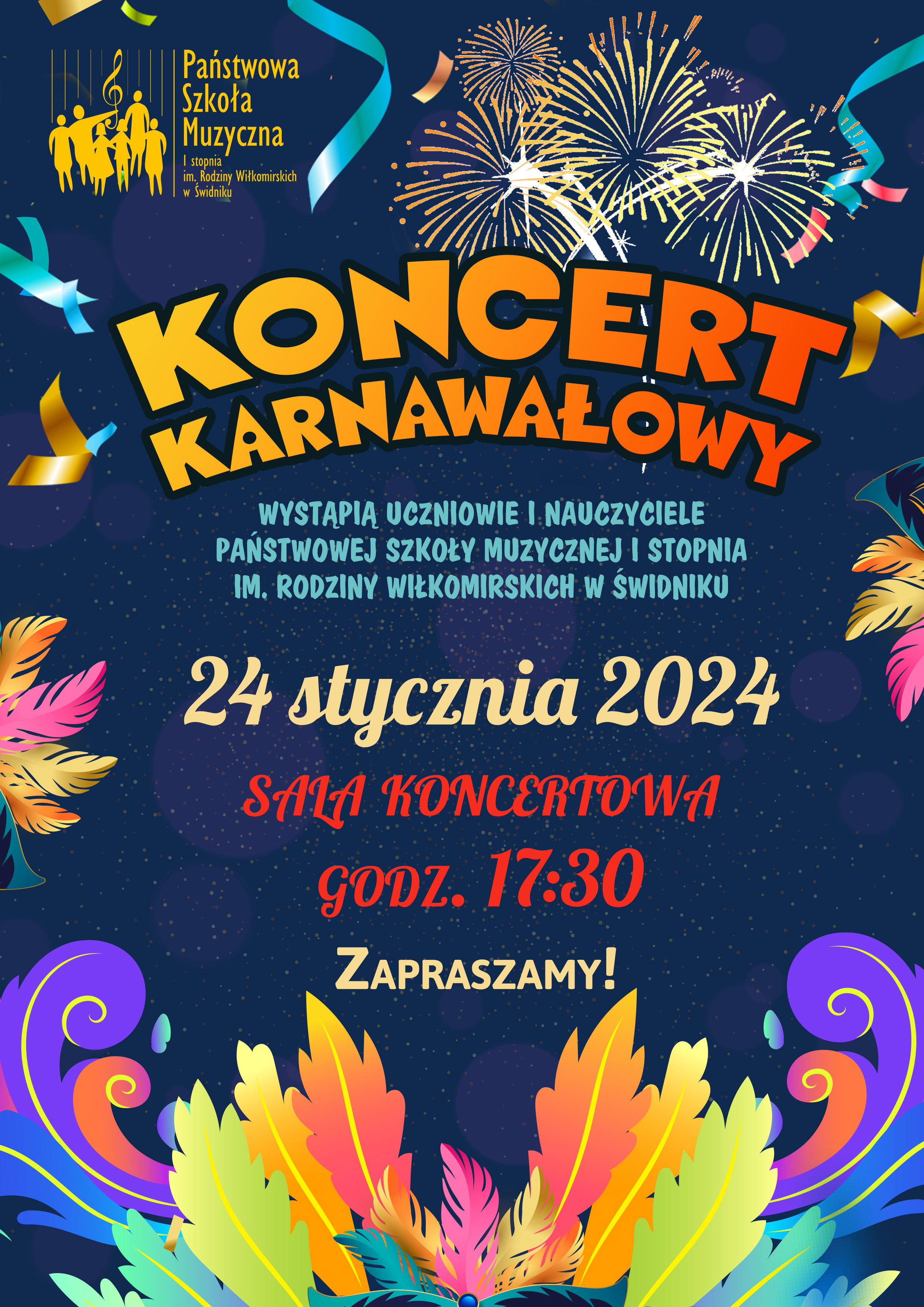 Zapraszamy na Koncert Karnawałowy w wykonaniu uczniów i nauczycieli PSM I st w Świdniku.