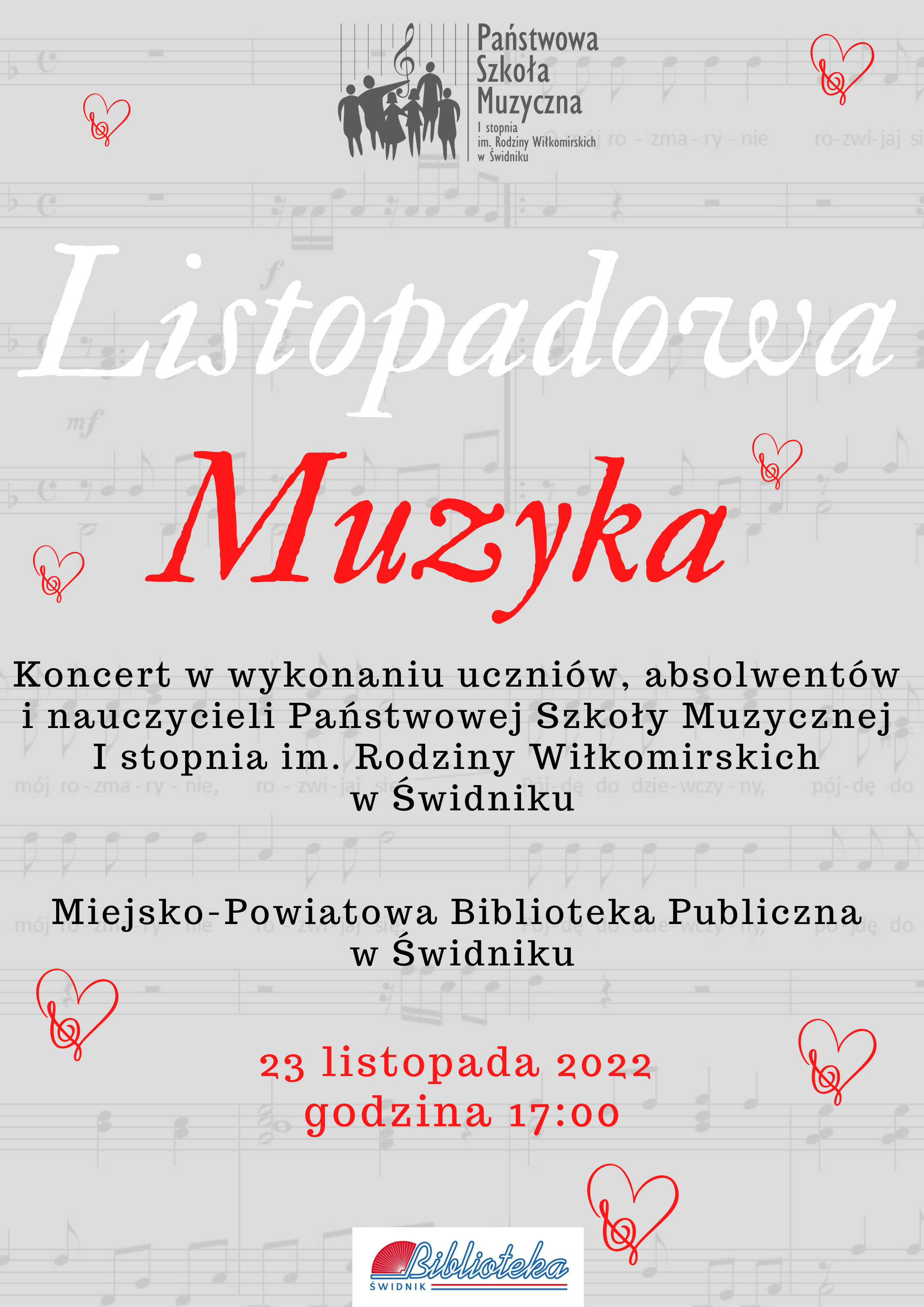 Z tej okazji, dnia 23 listopada br. o godz. 17:00 w Miejsko-Powiatowej Bibliotece Publicznej w Świdniku odbędzie się "Jesienny Koncert", przygotowany przez Uczniów, Nauczycieli i Absolwentów naszej Szkoły.