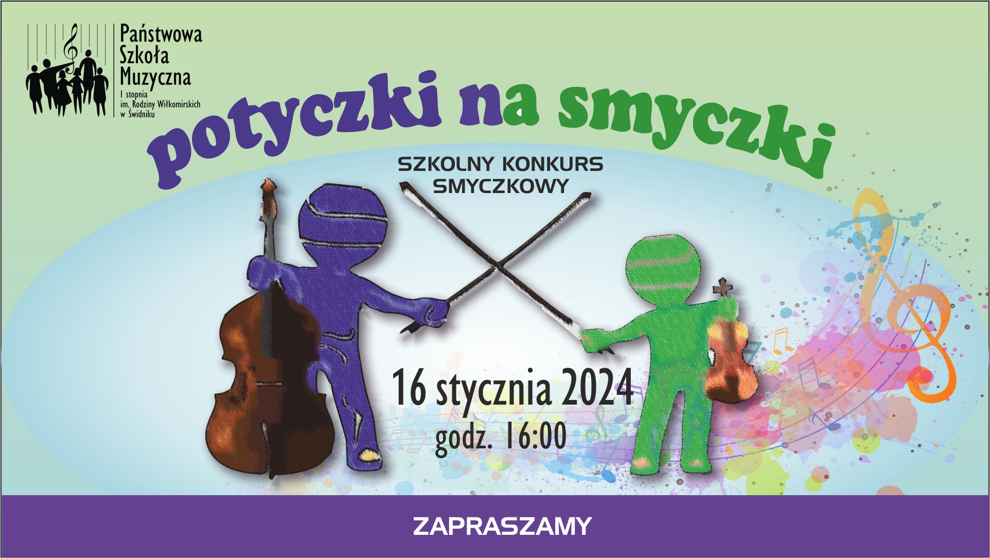 Zapraszamy na szkolny konkurs smyczkowy "Potyczki na smyczki" który odbędzie się w dniu 16 stycznia 2024 r. o godz. 16.00