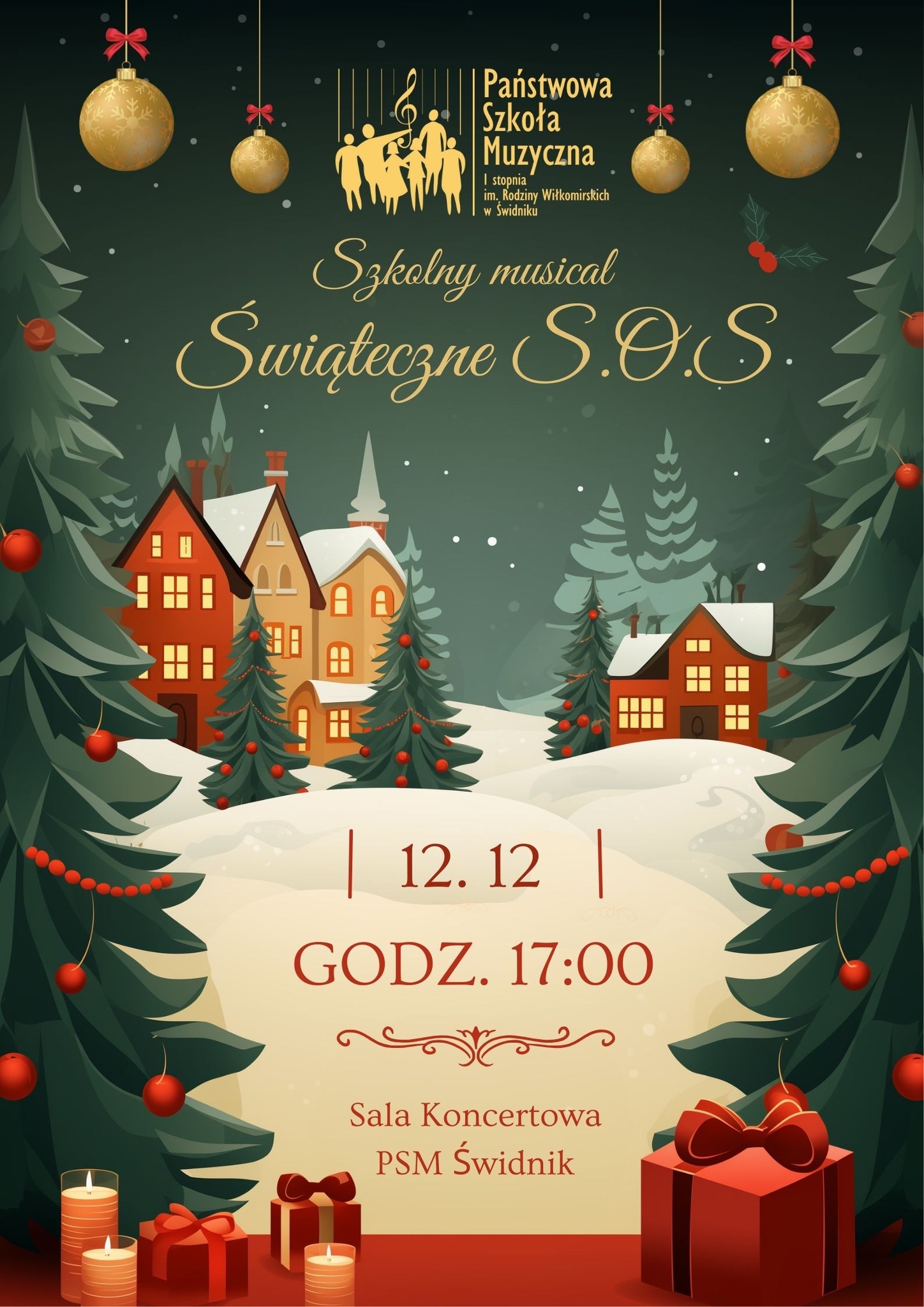 Zapraszamy na Szkolny musical "Świąteczne SOS" który odbędzie się 12 grudnia 2025 r. o godz. 17.00 w sali koncertowej PSM.
