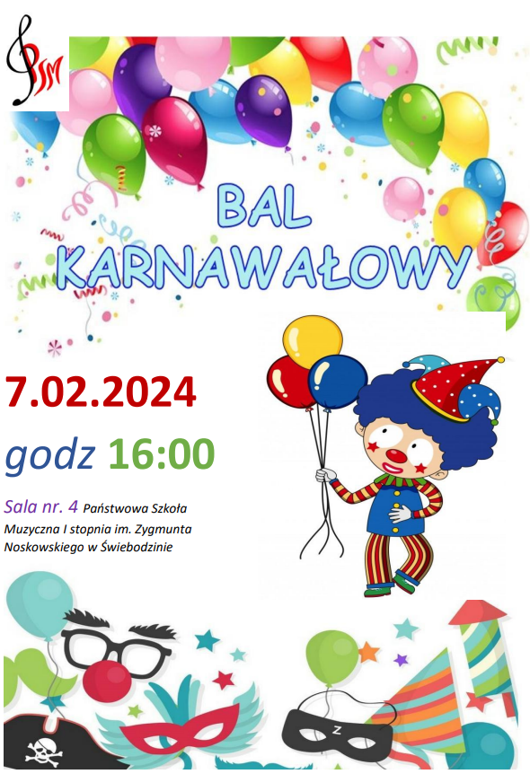 Samorząd Szkolny ma zaszczyt zaprosić wszystkich uczniów PSM I. st. w Świebodzinie na Bal Karnawałowy.