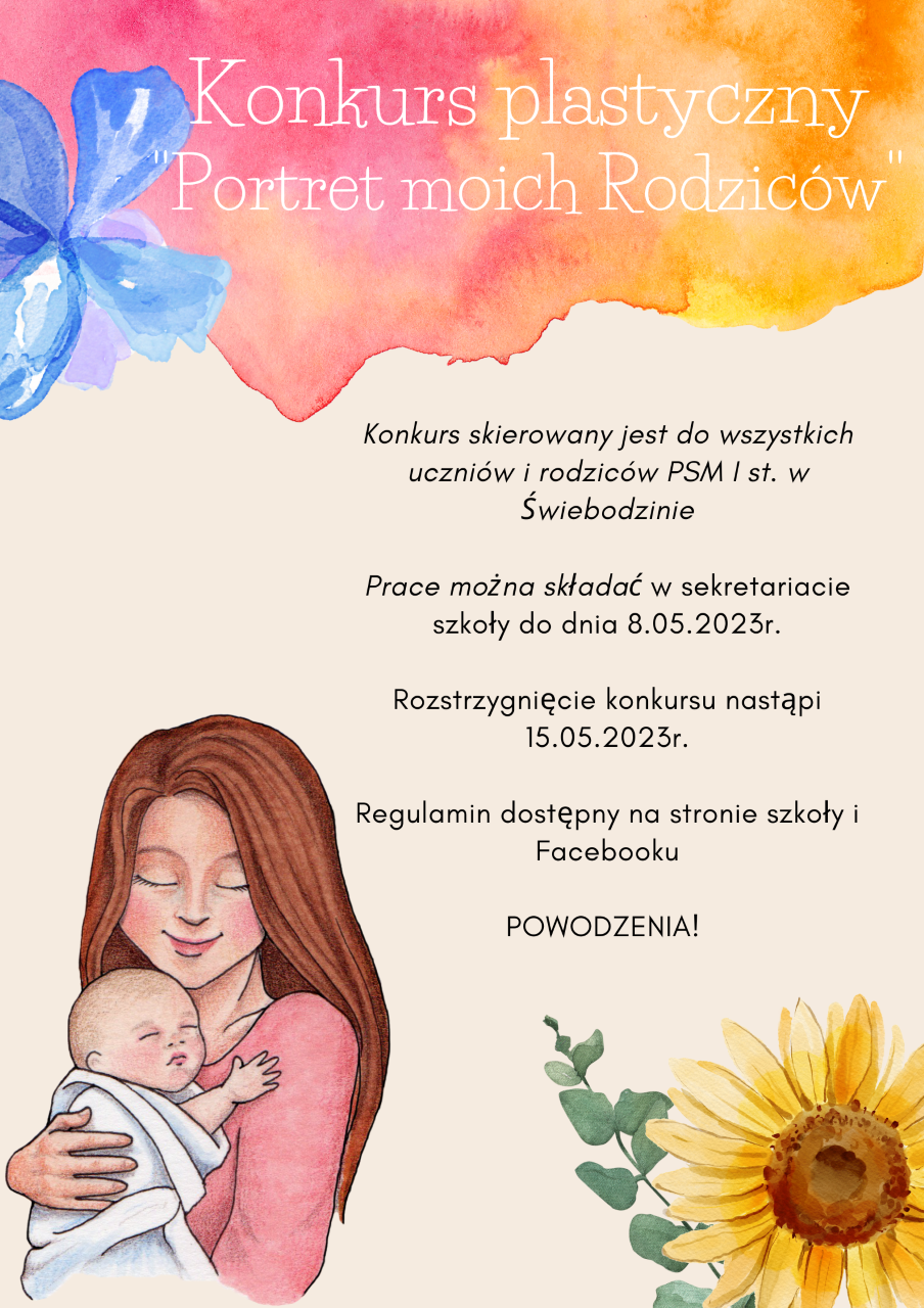 Z powodu zbyt małej ilości prac na Konkurs Plastyczny "Portret moich rodziców" Jury konkursu postanowiło przedłużyć termin składania prac do 17.05.2023 r. oraz dopuścić wszystkie prace zgłoszone do konkursu.