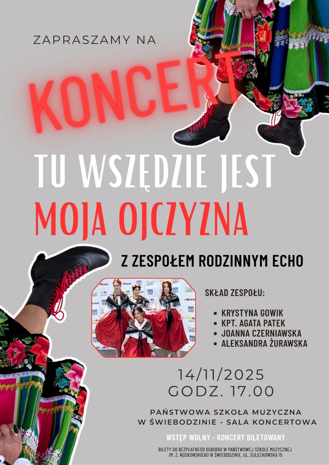 Serdecznie zapraszamy na wyjątkowy koncert patriotyczny z okazji Narodowego Święta Niepodległości pt. „Tu wszędzie jest moja ojczyzna”, w wykonaniu Zespołu Rodzinnego Echo.