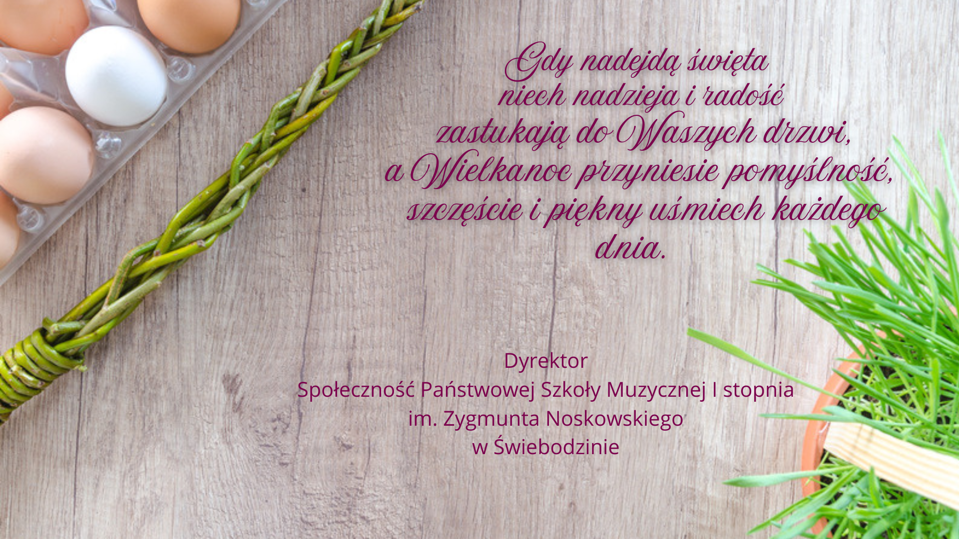 Gdy nadejdą Święta niech nadzieja i radość zastukają do Waszych drzwi, a Wielkanoc przyniesie pomyślność, szczęście i piękny uśmiech każdego dnia.