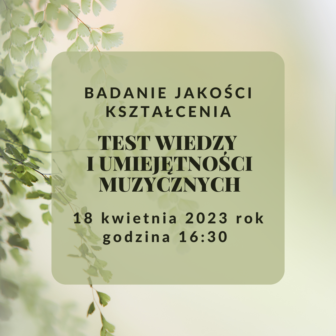 W dniu 18 kwietnia 2023 r. o godz. 16:30 odbędzie się ogólnopolski test z kształcenia słuchu i audycji muzycznych dla uczniów kasy VI/6 i IV/4.