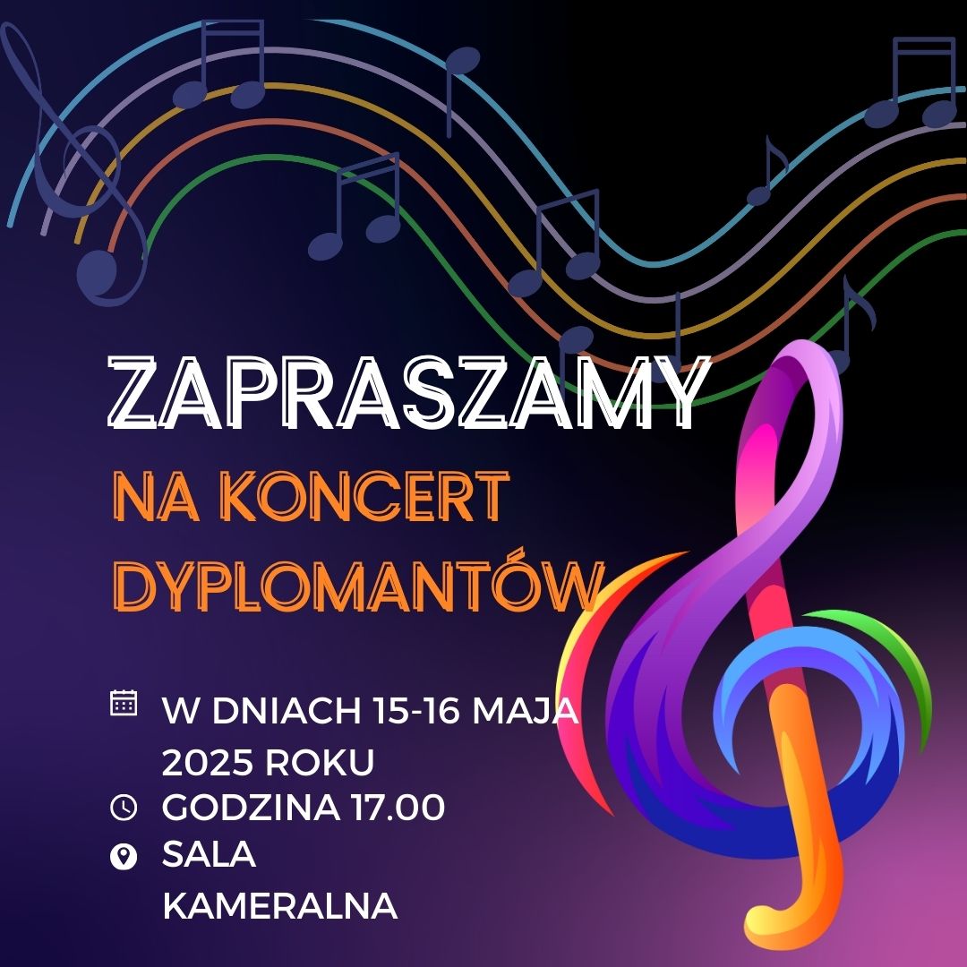 W dniach 15-16 majaa 2025 roku w naszej szkole odbędą się koncerty uczniów klasy IV cyklu czteroletniego i klasy VI cyklu sześcioletniego. Na koncertach usłyszymy części programów recitali dyplomowych, którą przygotowują uczniowie na końcowy egzamin. Jest to próba generalna przed tak ważnym wydarzeniem.