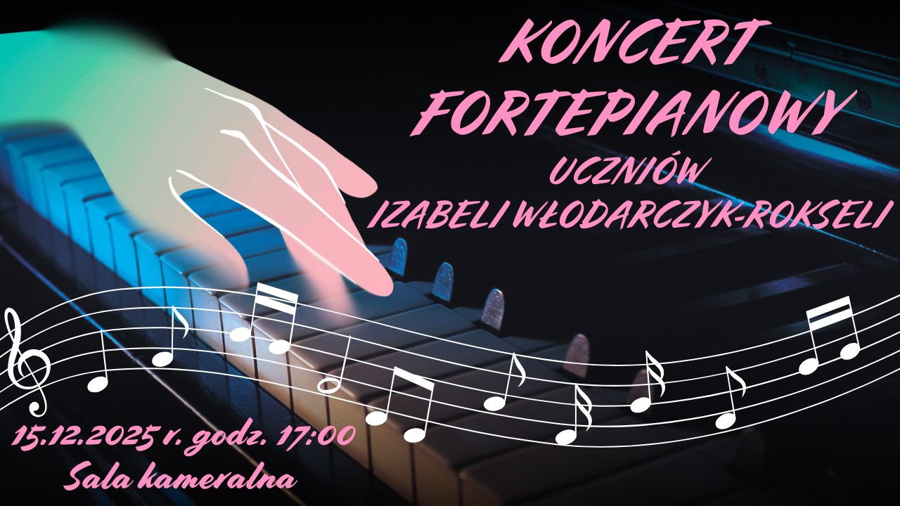 W zimowy grudniowy wieczór zapraszamy Państwa do sali kameralnej PSM, gdzie dźwięki fortepianu stworzą przestrzeń pełną wrażliwości i młodzieńczej pasji. W dniu 15 grudnia 2025 r. o godzinie 17:00 uczniowie pani Izabeli Włodarczyk - Rokseli zabiorą słuchaczy w muzyczną podróż - od delikatnych fraz, przez pełne energii brzmienia, aż po subtelne wybrzmienia ostatnich akordów. Każde wykonanie będzie małą opowieścią, w której spotkaja się talent, praca i marzenia tych, którzy dopiero odkrywają swoja artystyczną drogę.