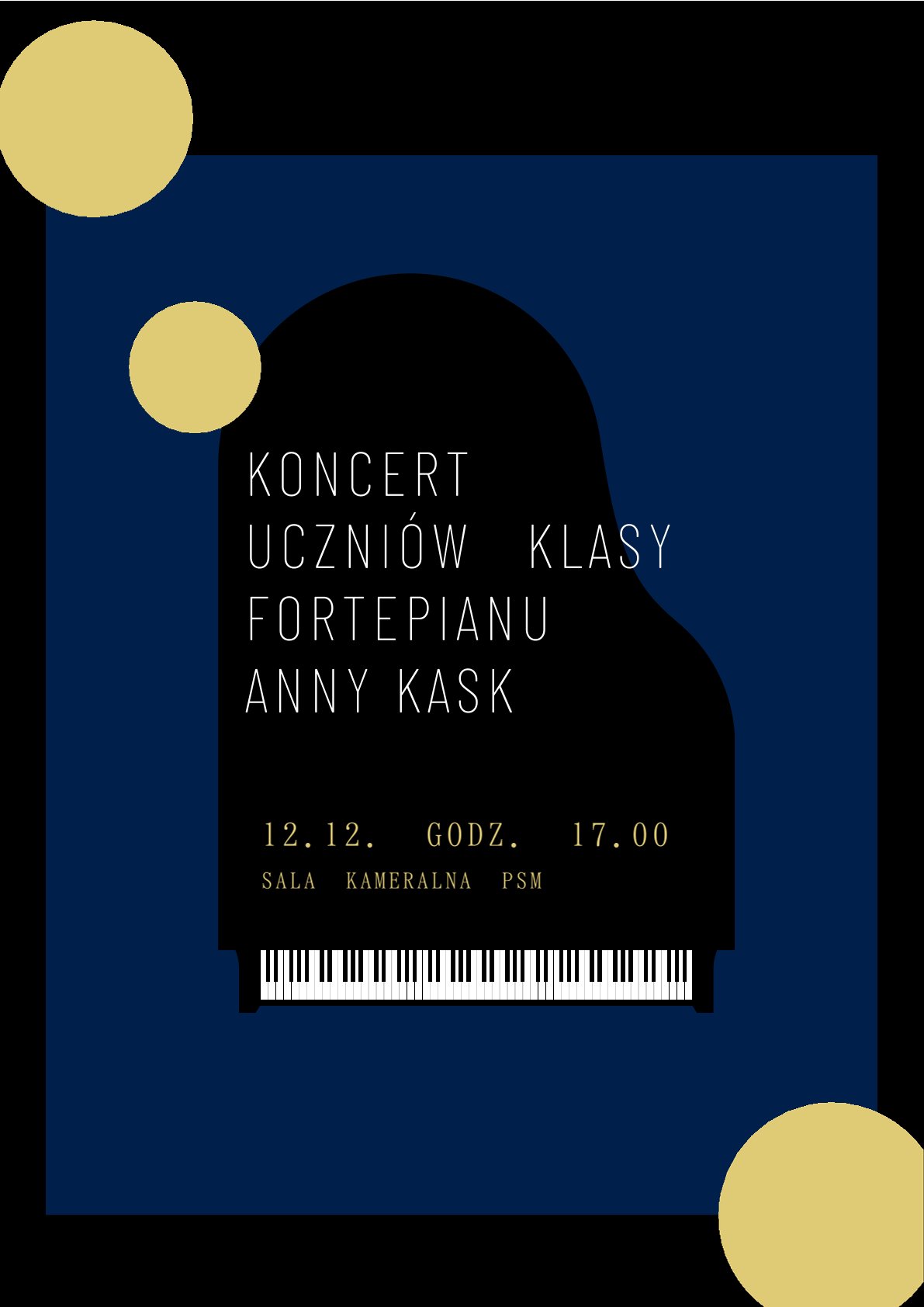 Serdecznie zapraszamy na koncert uczniów klasy fortepianu prowadzonej przez panią Annę Kask. Wydarzenie odbędzie się 12 grudnia 2025 roku o godzinie 17:00 w sali kameralnej PSM.