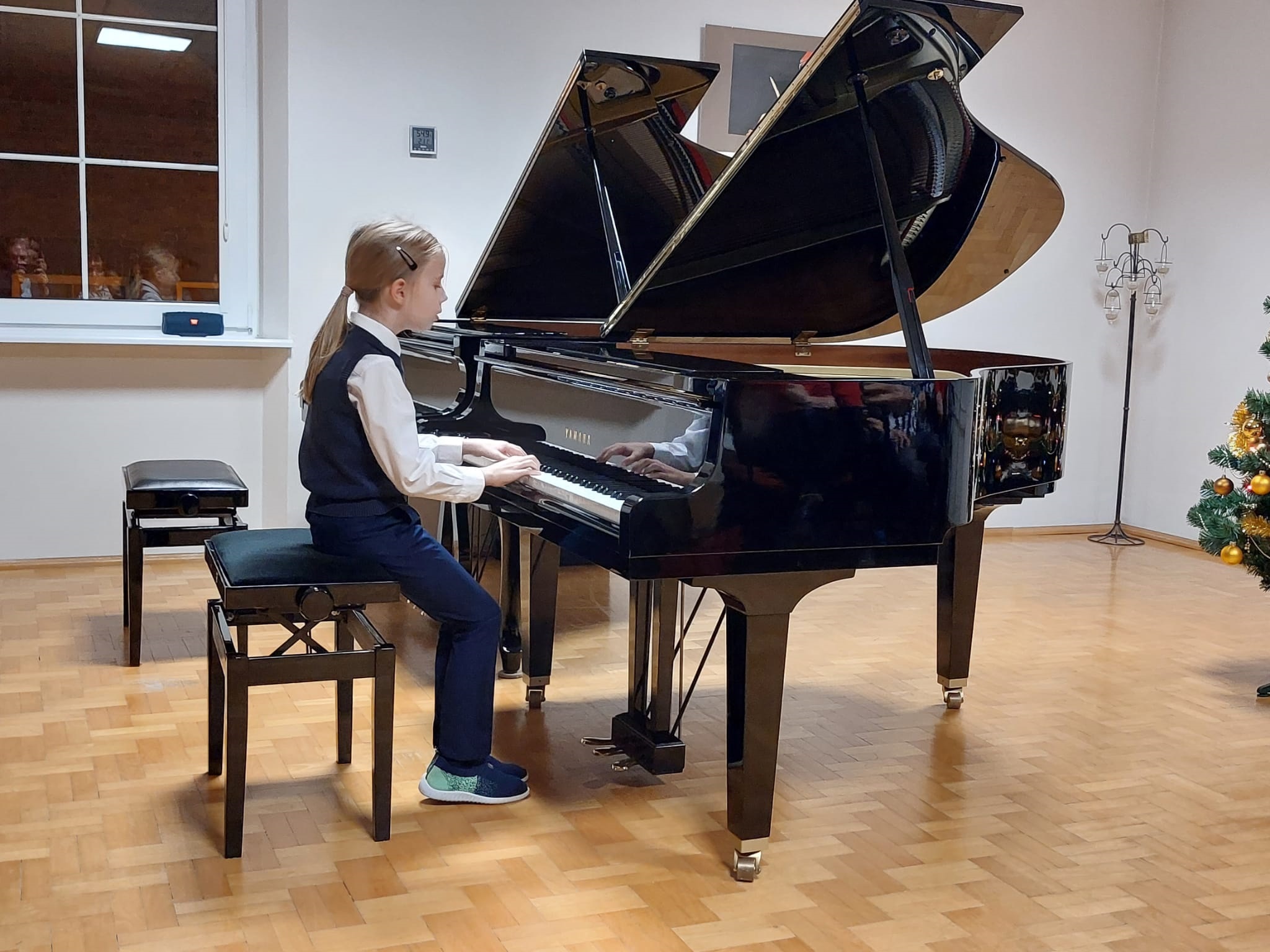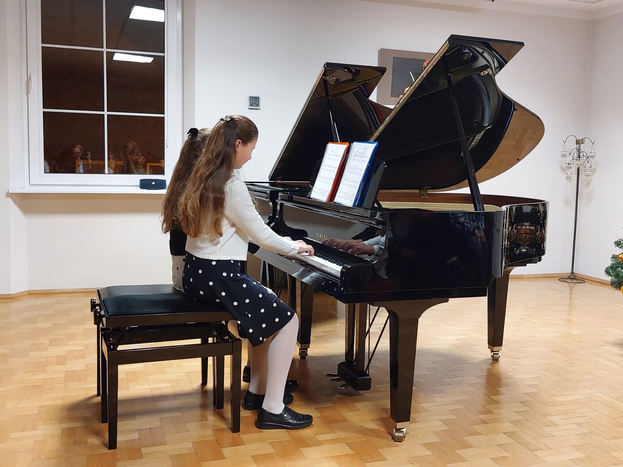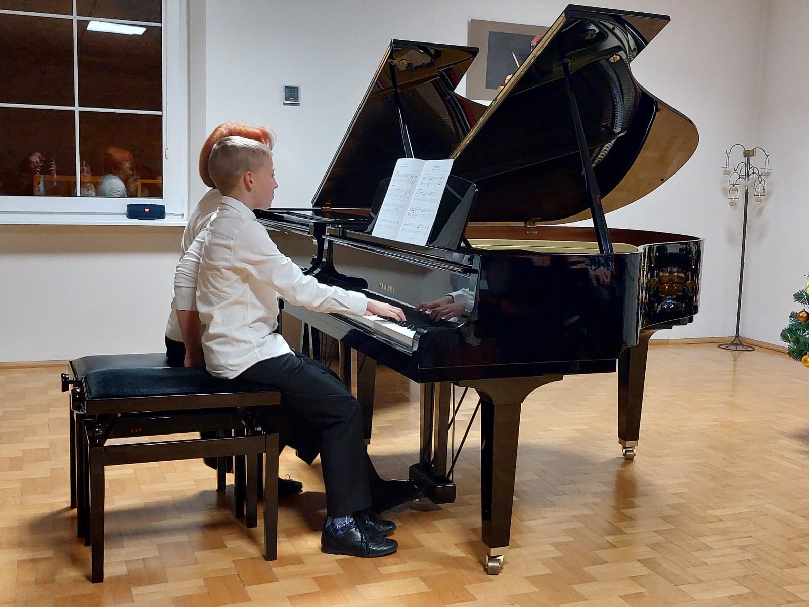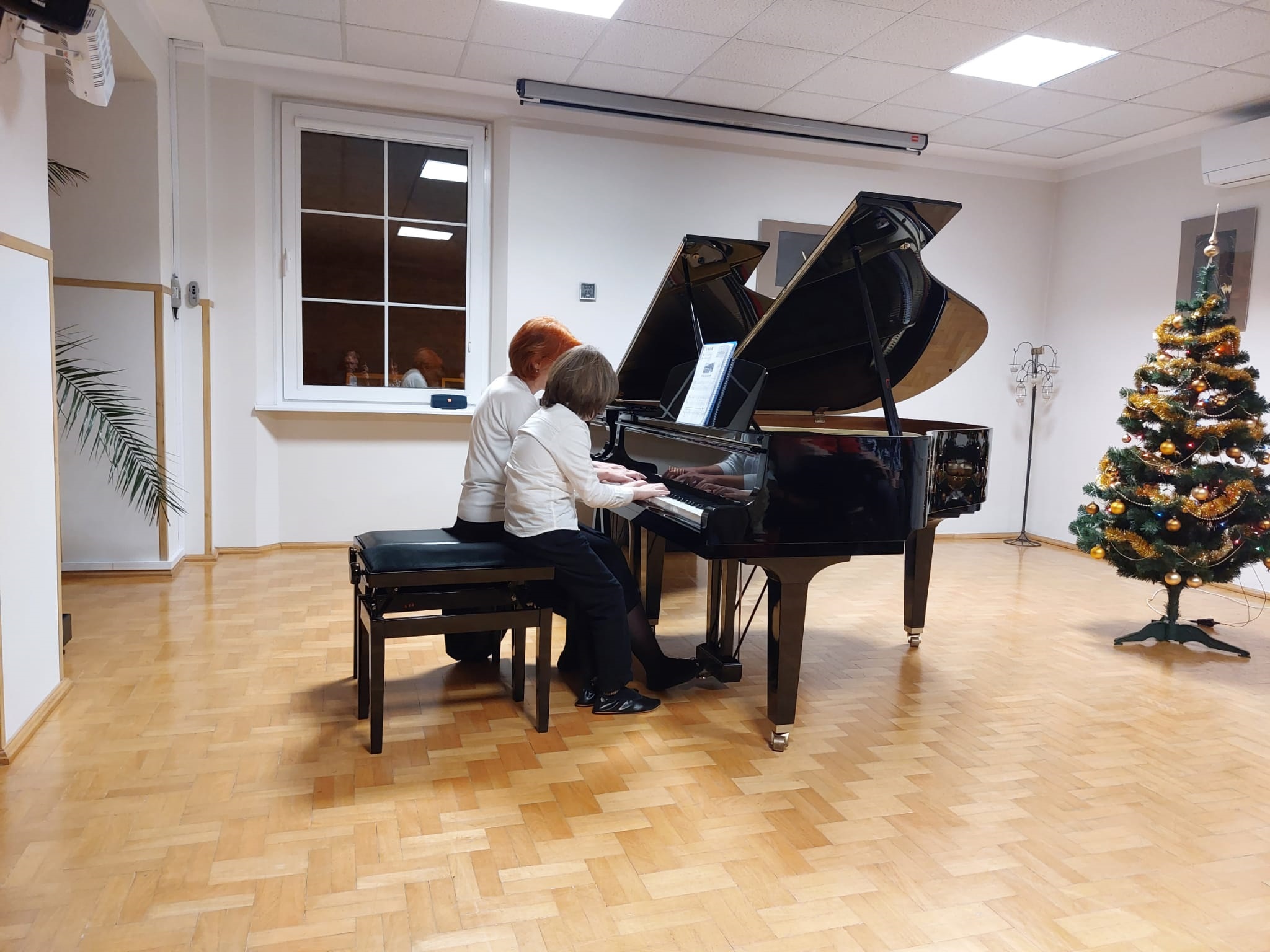 15 grudnia 2023 r. pianiści klasy fortepianu zaprezentują się w utworach solowych oraz w duetach.
