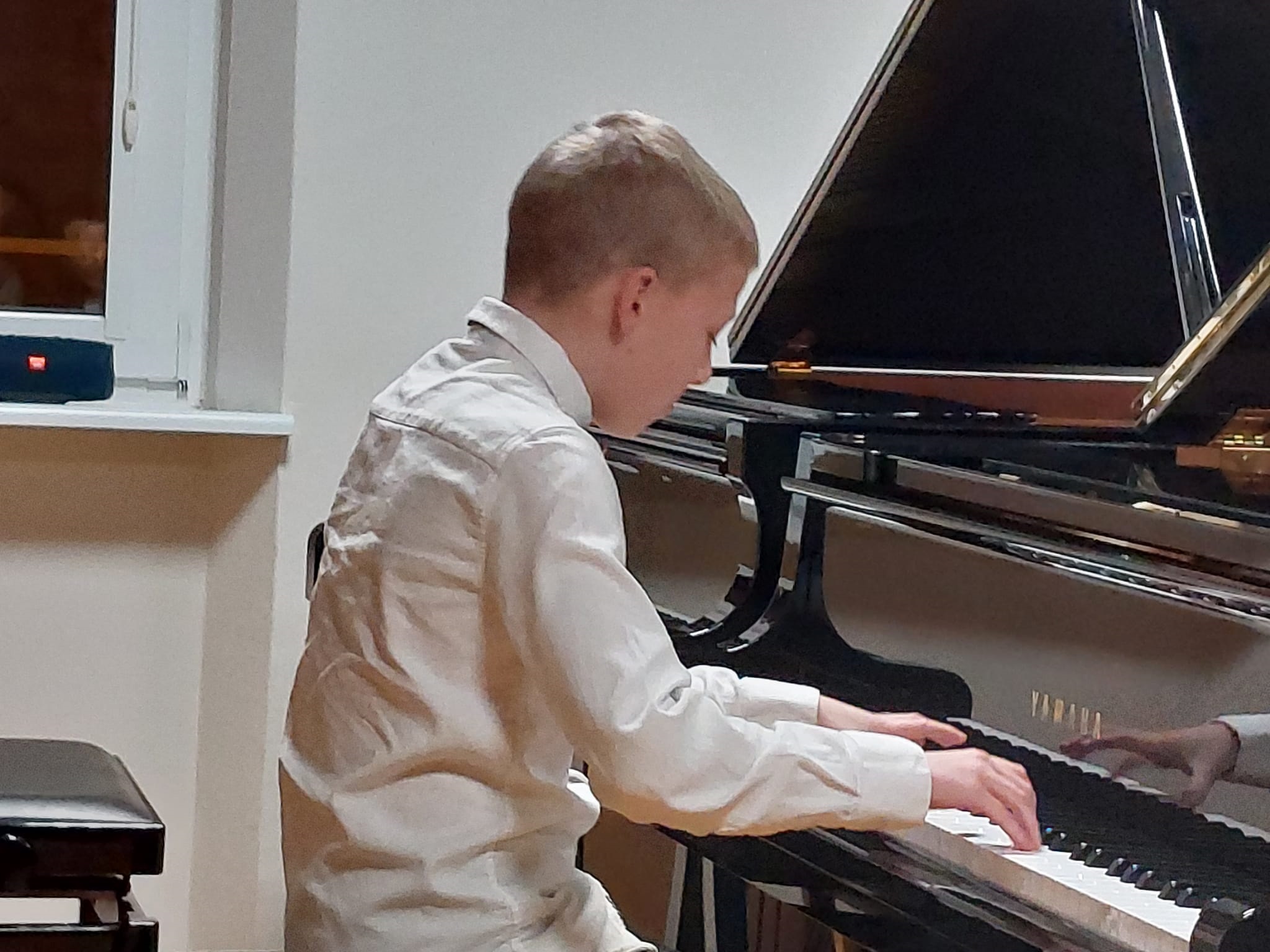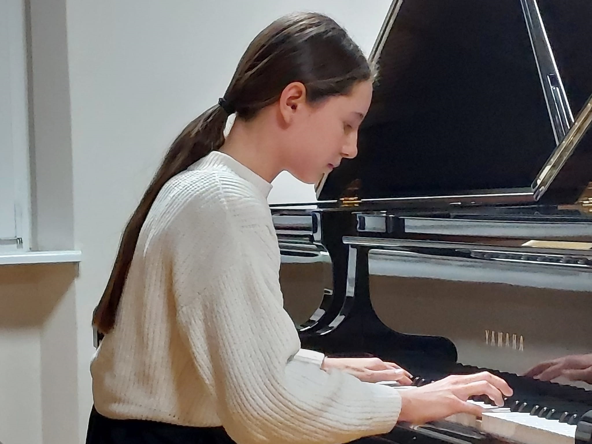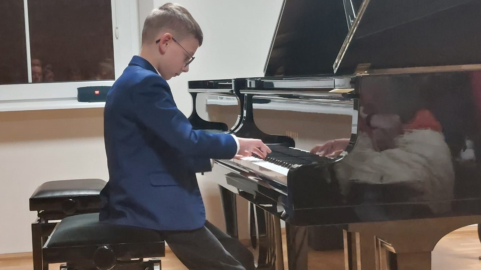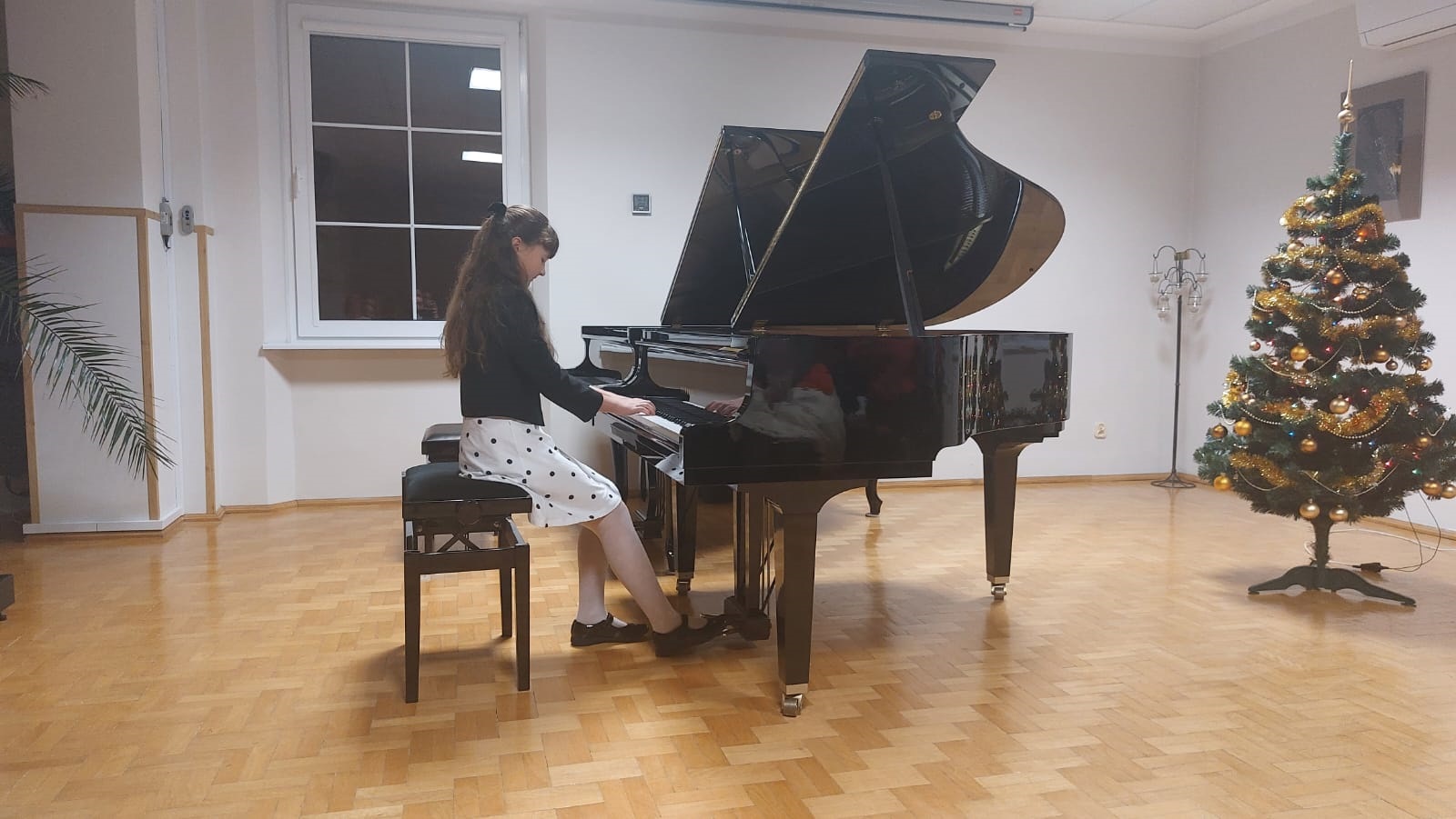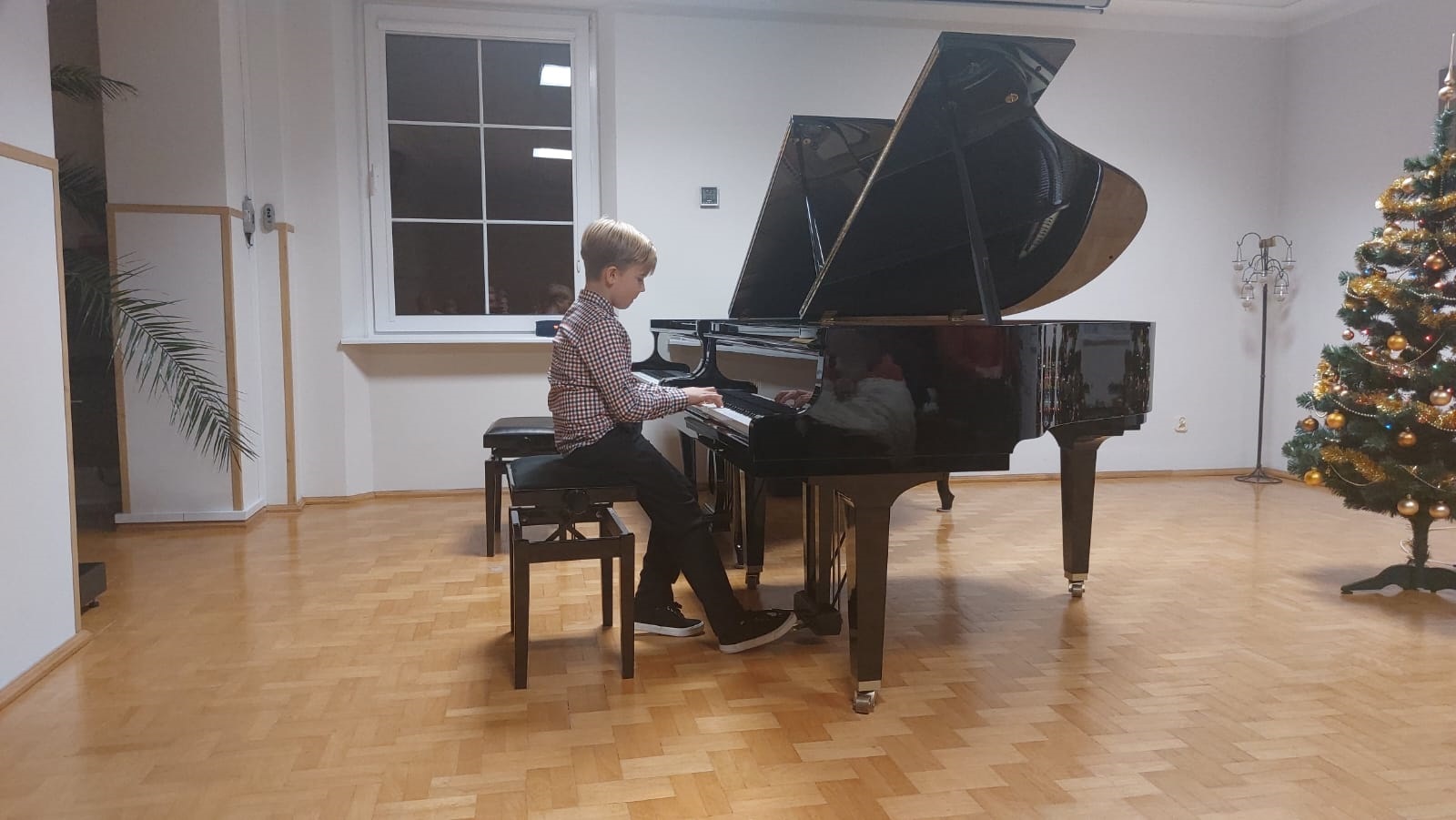 15 grudnia 2023 r. pianiści klasy fortepianu zaprezentują się w utworach solowych oraz w duetach.