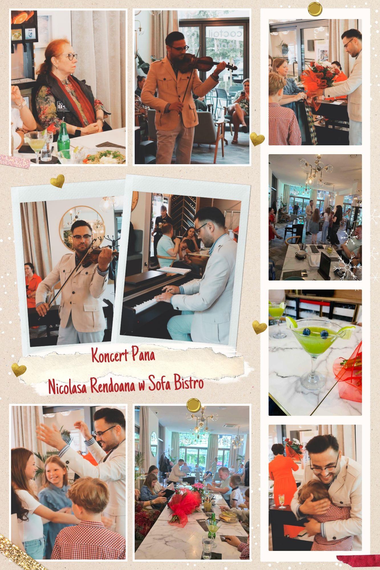31 maja 2024 r. uczniowie klasy skrzypiec p. Elżbiety Głowackiej wraz z Rodzicami, mieli przyjemność wysłuchania koncertu p. Nicolasa Rendona, który odbył się w „Sofa Bistro”. Zabrzmiały standardy muzyki rozrywkowej, filmowej i nie tylko. Uczniowie mogli także spróbować pysznego koktajlu owocowego, który Pan Rendon zaserwował im w ramach słodkiej niespodzianki. Tak spędziliśmy Przeddzień Dziecka.