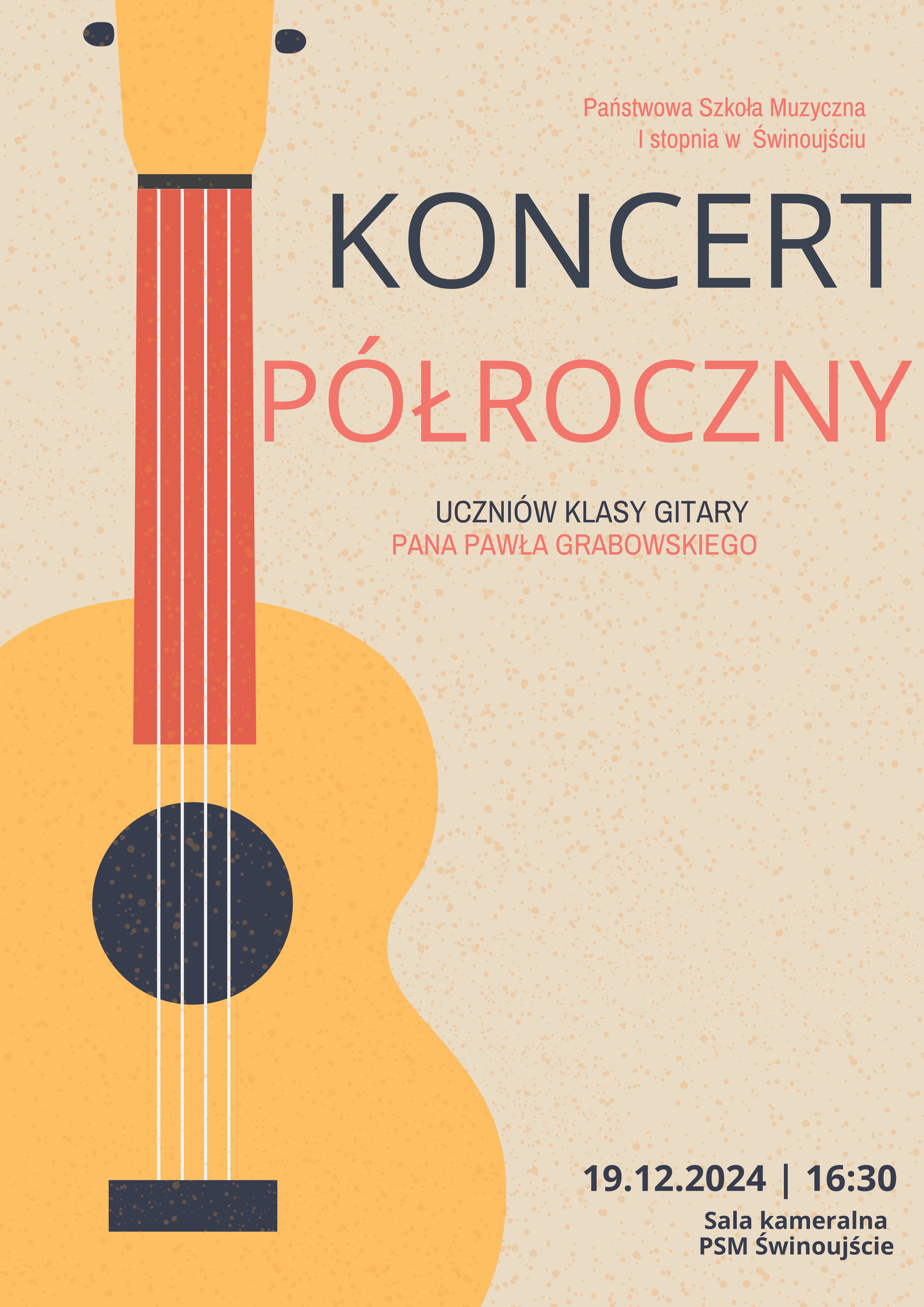 Zapraszamy na Koncert półroczny gitarowy w dniu 19 grudnia 2024 roku o godzinie 16.30 do sali kameralnej w PSM I stopnia w Świnoujściu.
