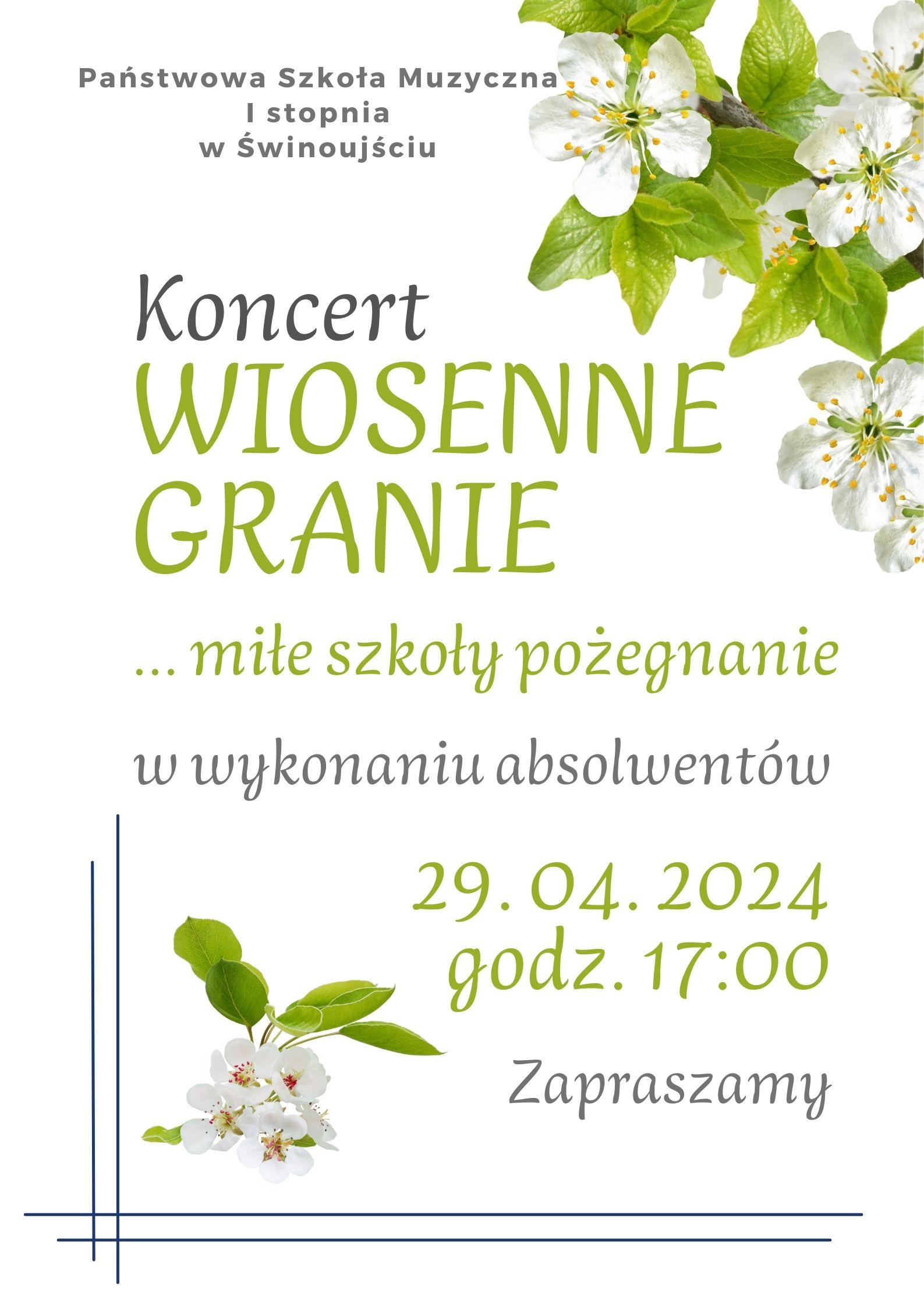 Zapraszamy na Koncert Wiosenne Granie ....... miłe szkoły pożegnanie w wykonaniu absolwentów. Życzymy miłego odbioru.