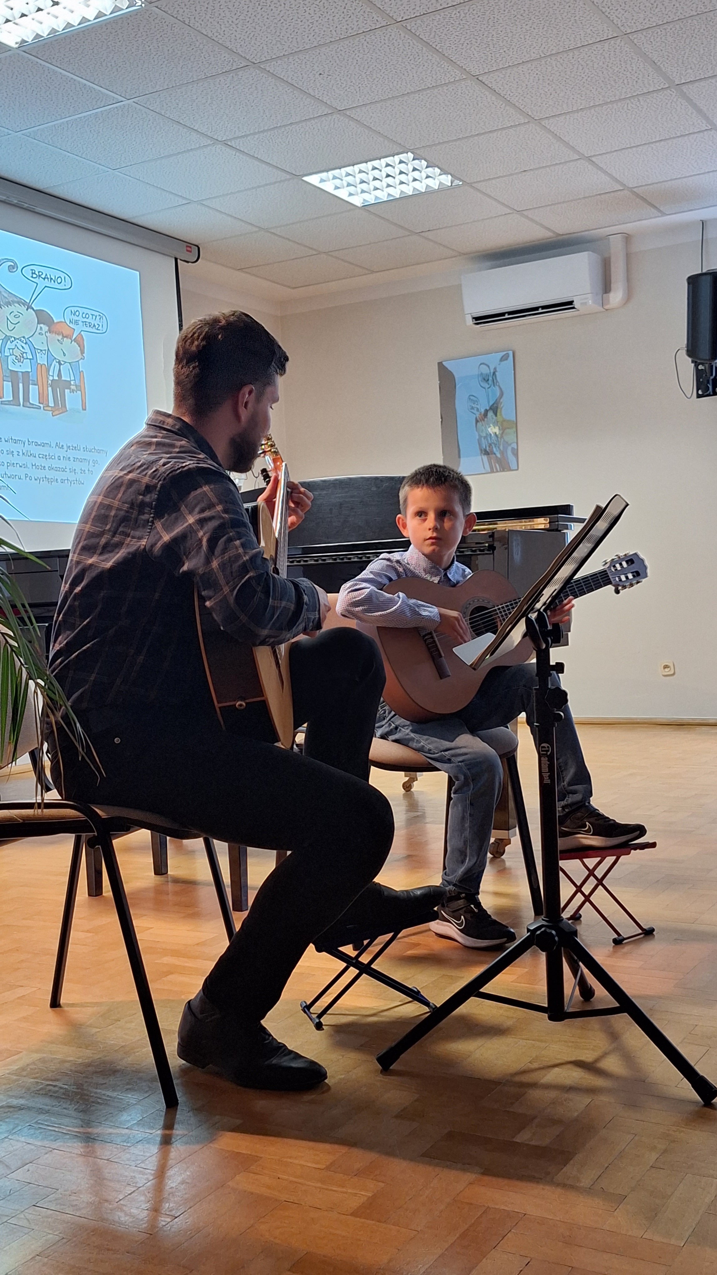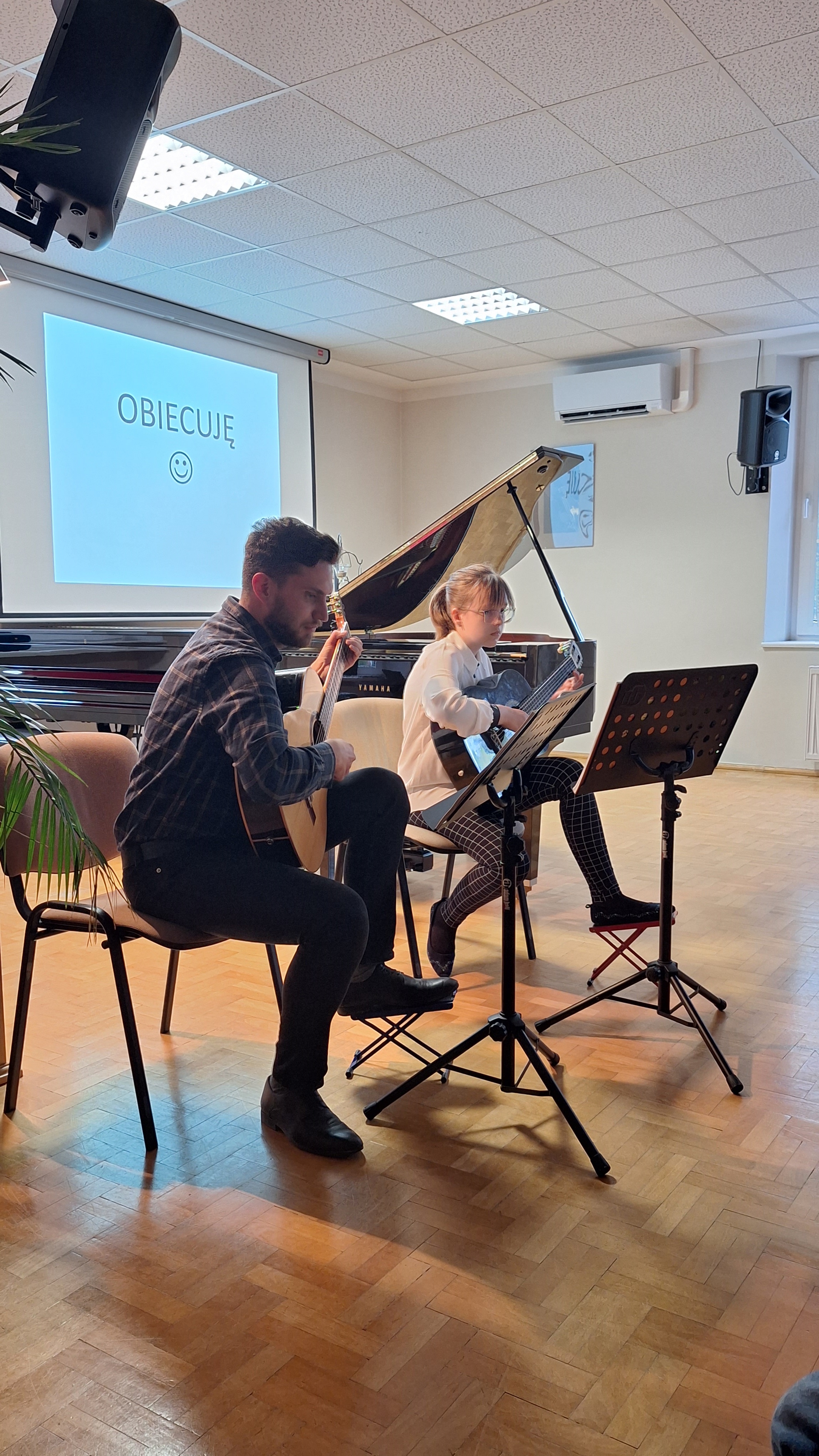 Oprawę muzyczną stanowił występ wszystkich uczniów klasy I cyklu sześcioletniego pod kierunkiem Bernadety Wenty. Uczniowie wykonali piosenkę „Świat muzyką malowany.” Zaprezentowali się również soliści: skrzypaczki, przygotowane przez p. Elżbietę Głowacką, pianiści z klasy p. Anny Kask, p. Izabeli Włodarczyk-Roksela i p. Lilii Dmochowskiej oraz gitarzyści z klasy p. Łukasza Wonsa.