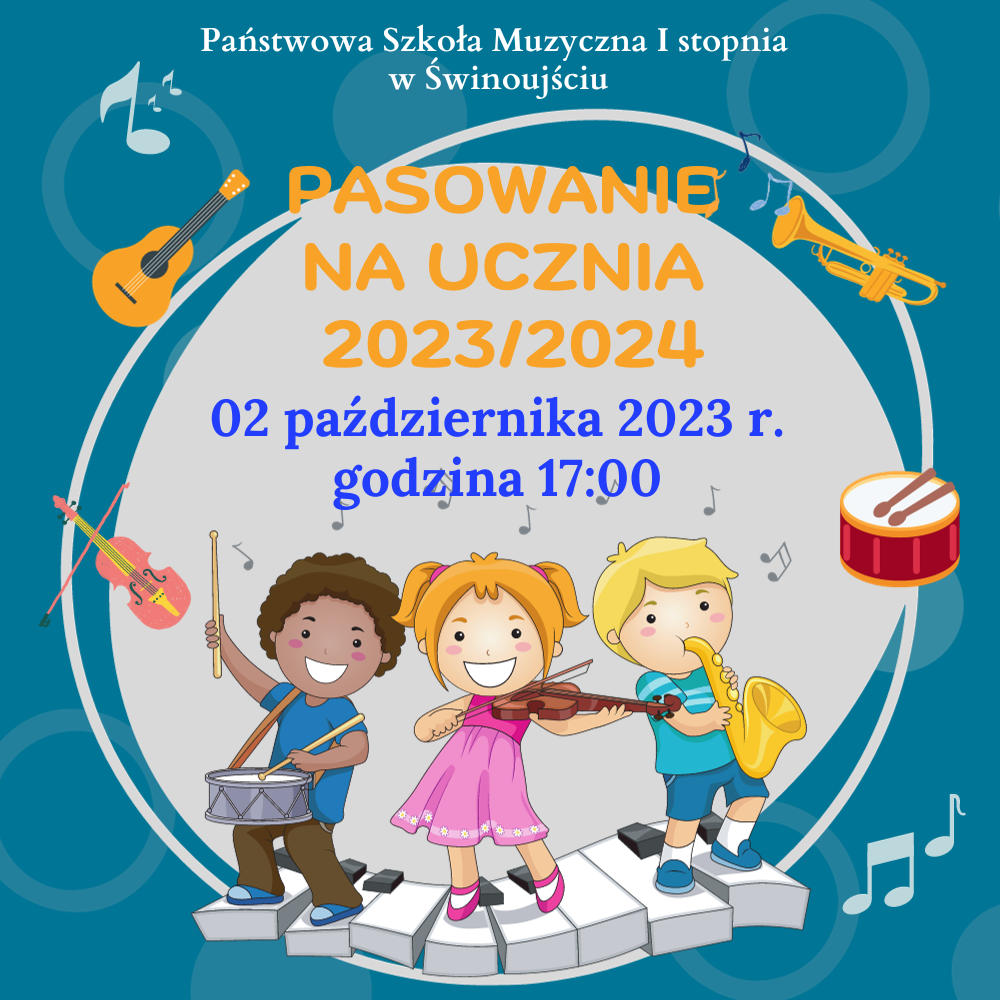 W dniu 02 października 2023 roku o godzinie 17:00 w sali kameralnej Państwowej Szkoły Muzycznej I stopnia w Świnoujściu odbędzie się uroczystość pasowania na uczniów klas pierwszych z cyklu czteroletniego i sześcioletniego w roku szkolnym 2023/2024.