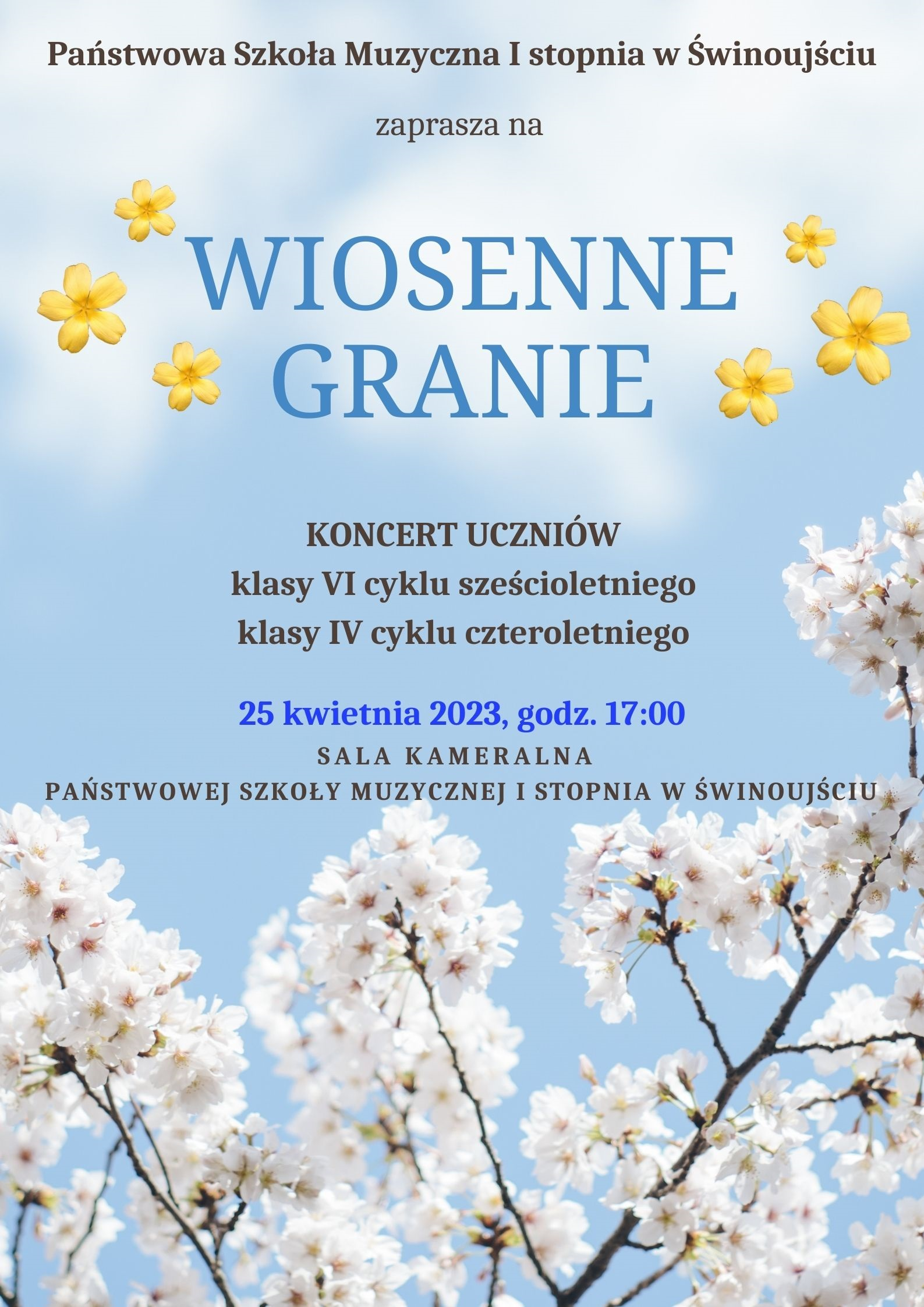 Państwowa Szkoła Muzyczna I stopnia w Świnoujściu serdecznie zaprasza na koncert dyplomantów w najbliższy wtorek 25 kwietnia 2023 roku o godzinie 17:00.