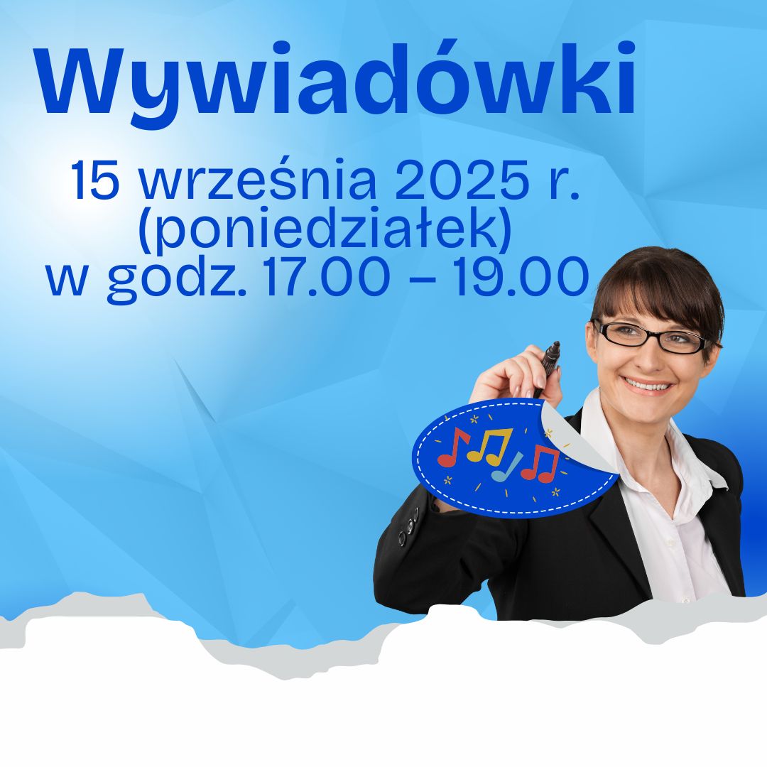 uprzejmie informujemy, że w dniu 15 września 2025 r. (poniedziałek) w godz. 17.00 – 19.00 odbędą się wywiadówki z wszystkimi nauczycielami.