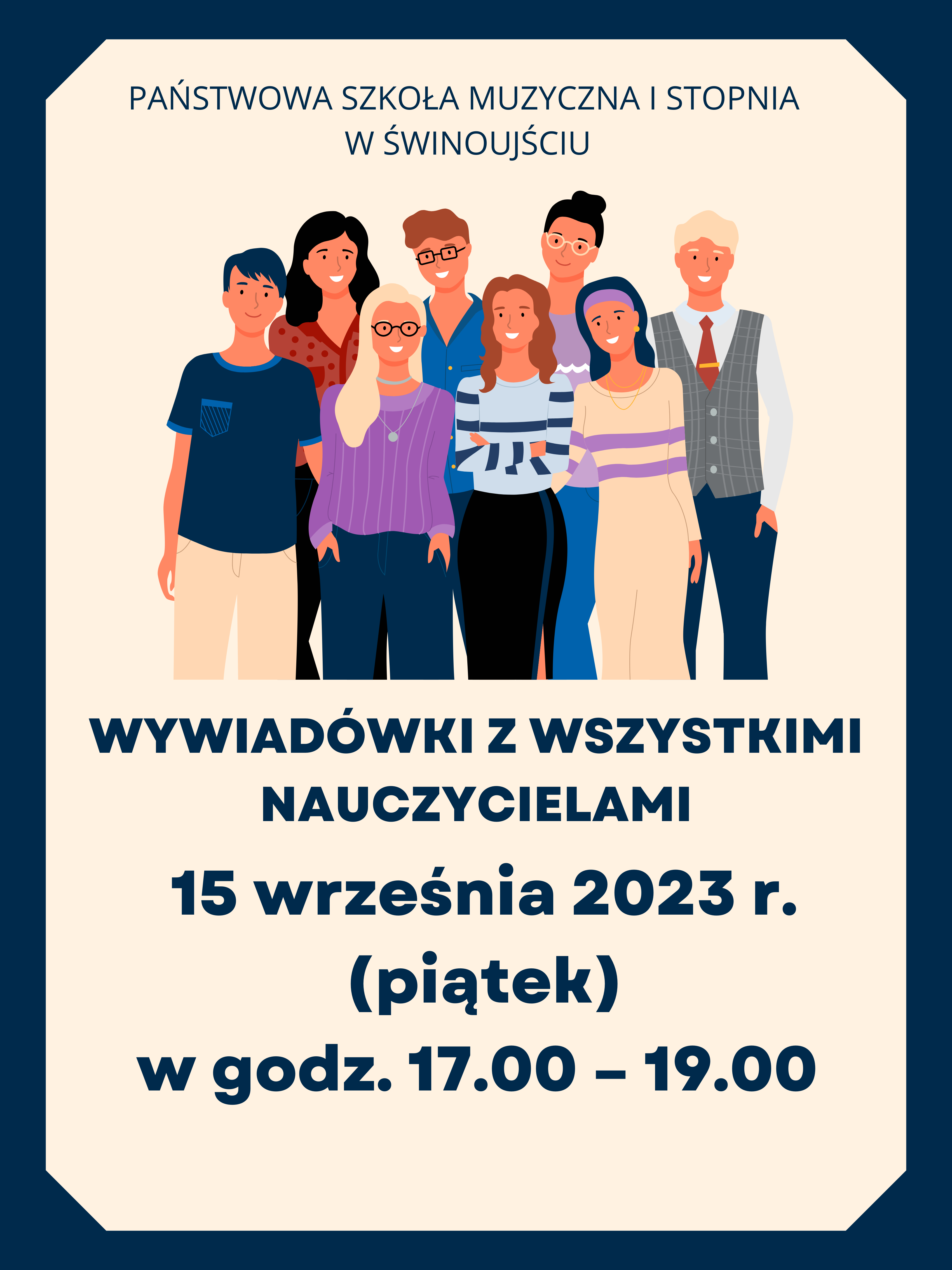 15 września 2023 r. (piątek) w godz. 17.00 – 19.00 odbędą się wywiadówki z wszystkimi nauczycielami.
